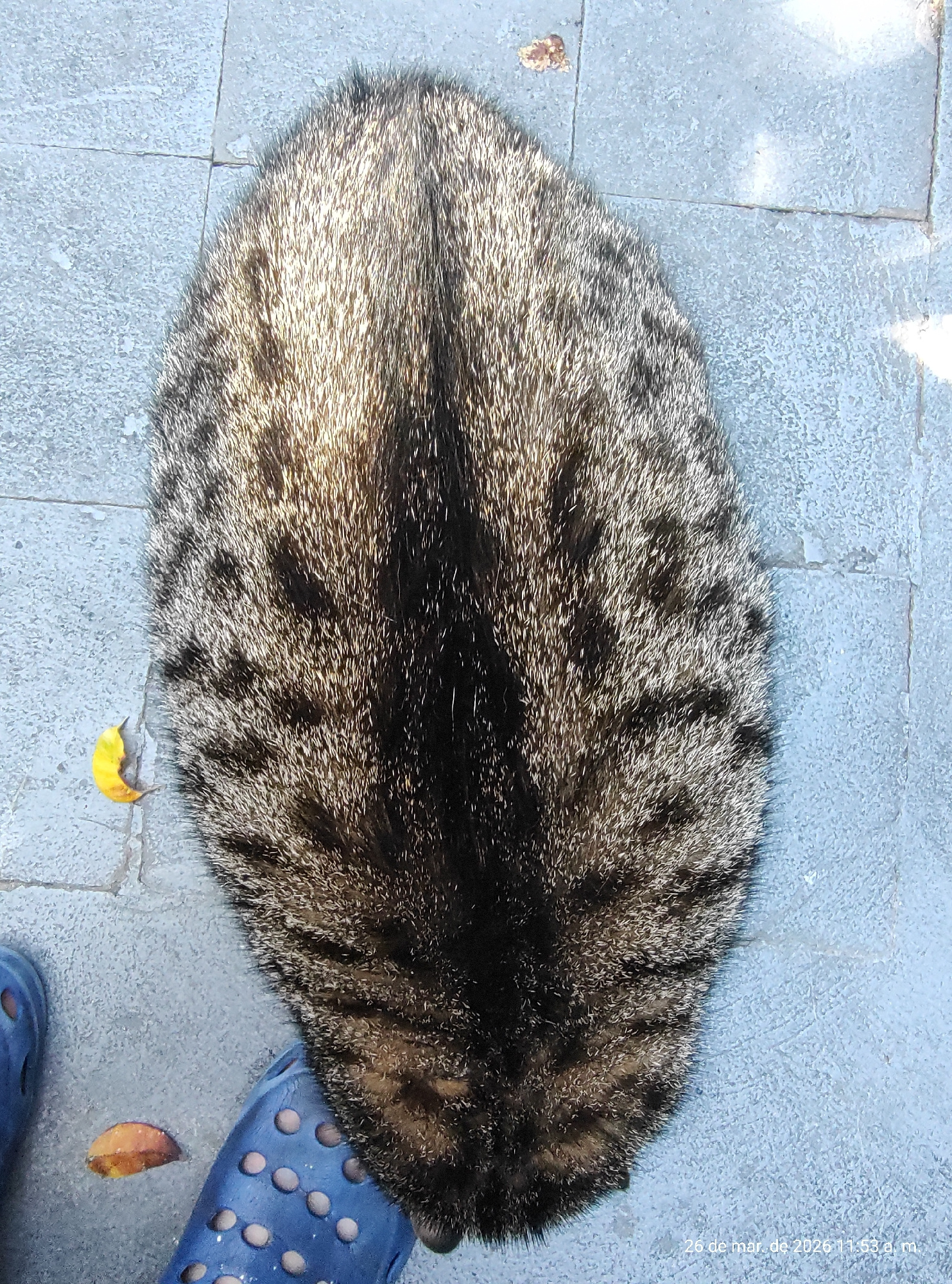 The scene is located in Wilde, Argentina, captured on March 26, 2026, at 11:53 AM. A domestic cat, displaying a mackerel tabby coat pattern with variegated shades of brown, black, and silvery-grey fur…read more