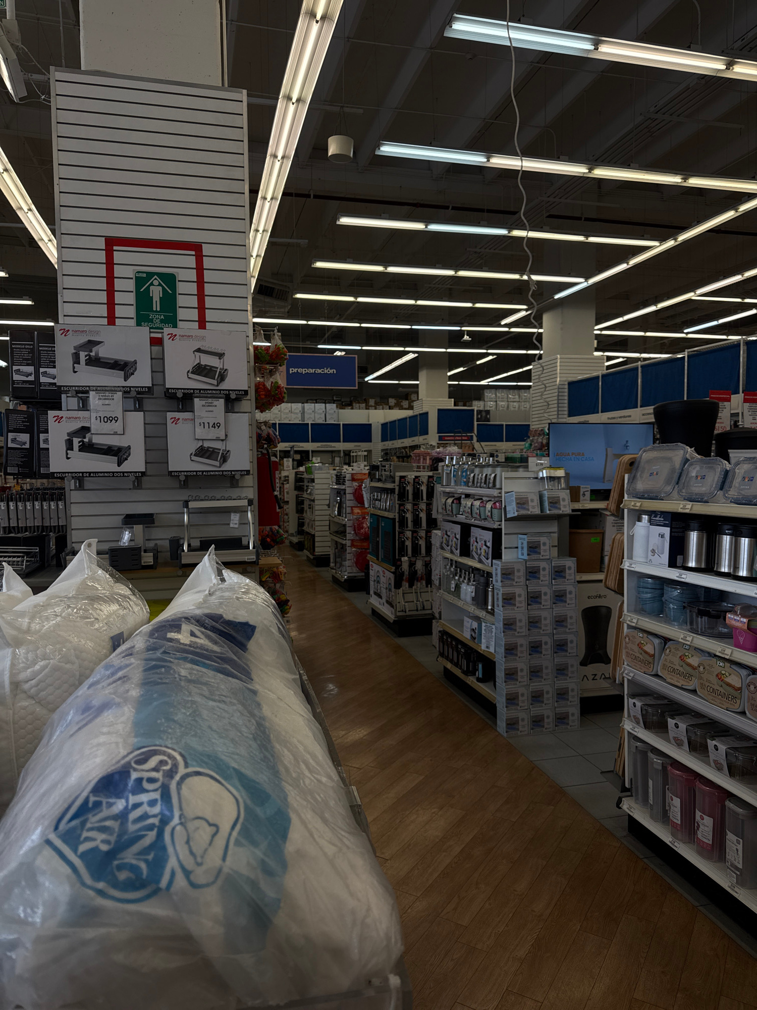 Here is a detailed description of the image: **General Overview:** The image appears to be taken inside a large retail store, likely a department store, in Puebla, Mexico. The perspective is somewhat…read more