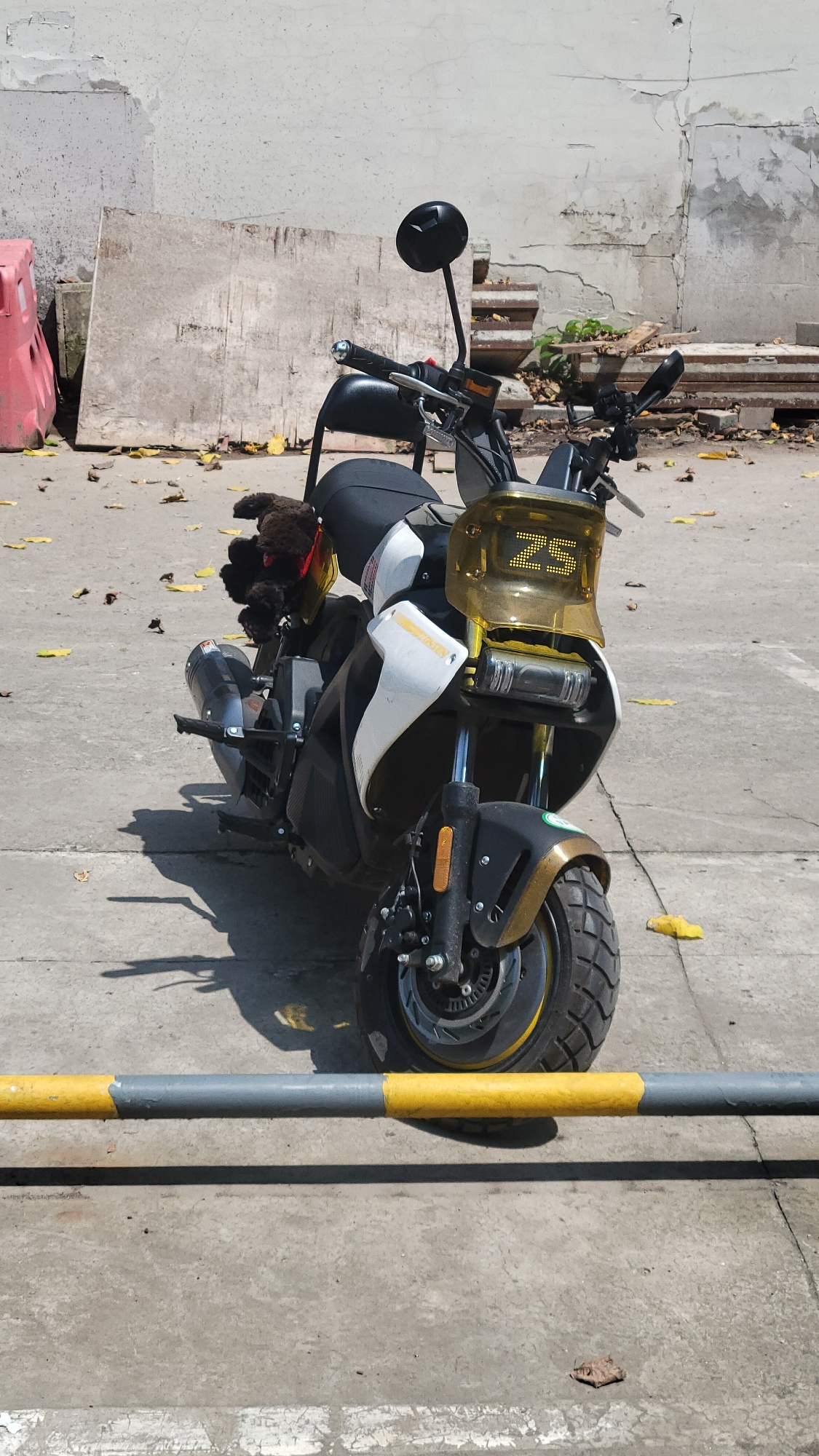 The image, captured in Yuzhong District, China, shows a modern electric scooter or motorcycle parked outdoors on a concrete surface during a bright, sunny day. The vehicle features a sleek design withβ¦read more
