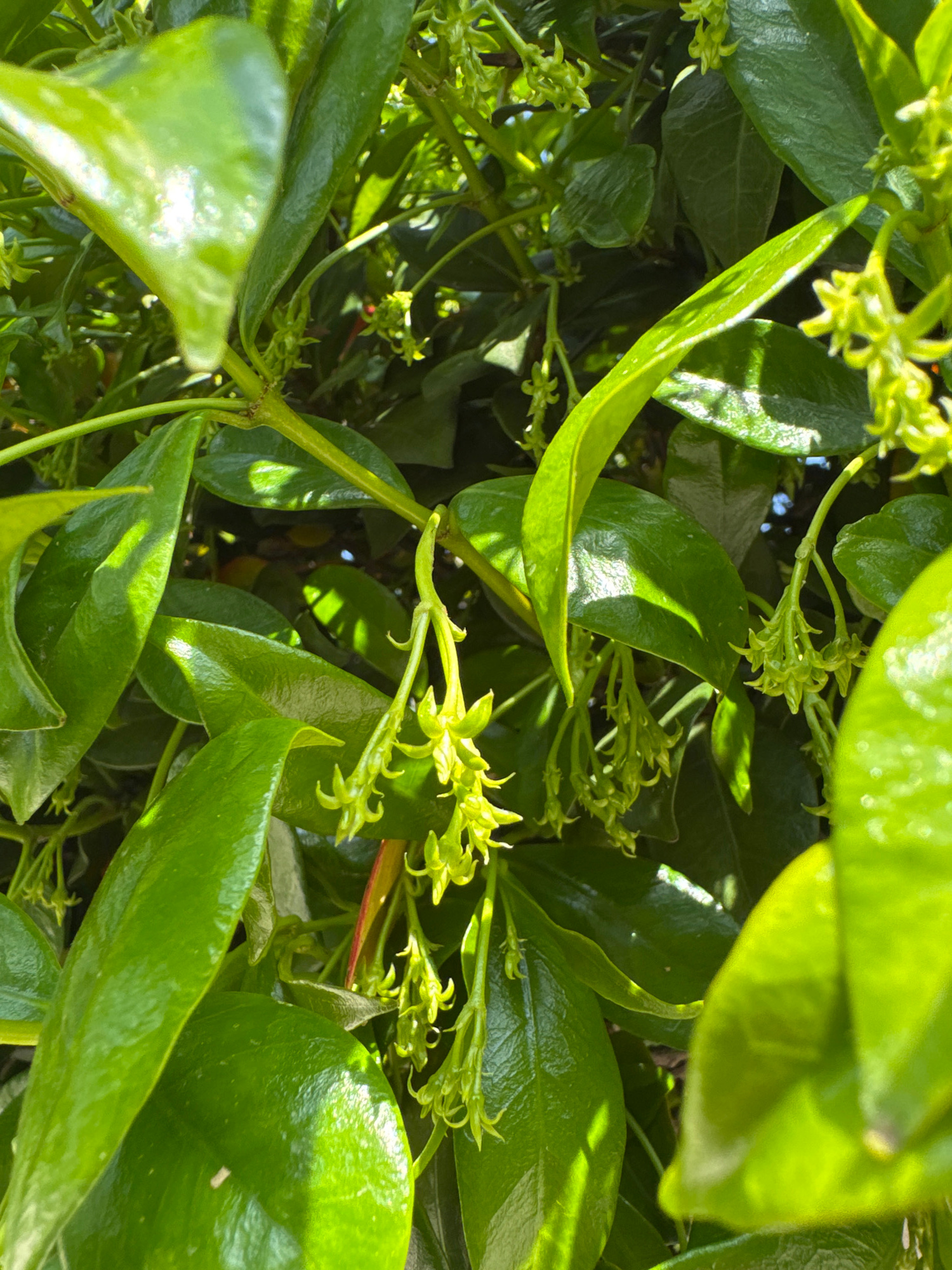 A close-up shot of a lush green plant with glossy leaves and small, clustered flower buds. The plant is likely outdoors, given the natural light and shadows. The location, Aprilia, Italy, suggests it…read more