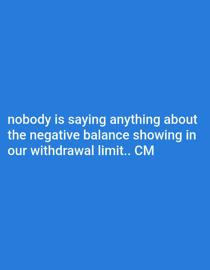The image displays a solid blue background (#2196F3, RGB 33, 150, 243) with white, sans-serif text positioned centrally. The text reads: "nobody is saying anything about the negative balance showing iā¦read more