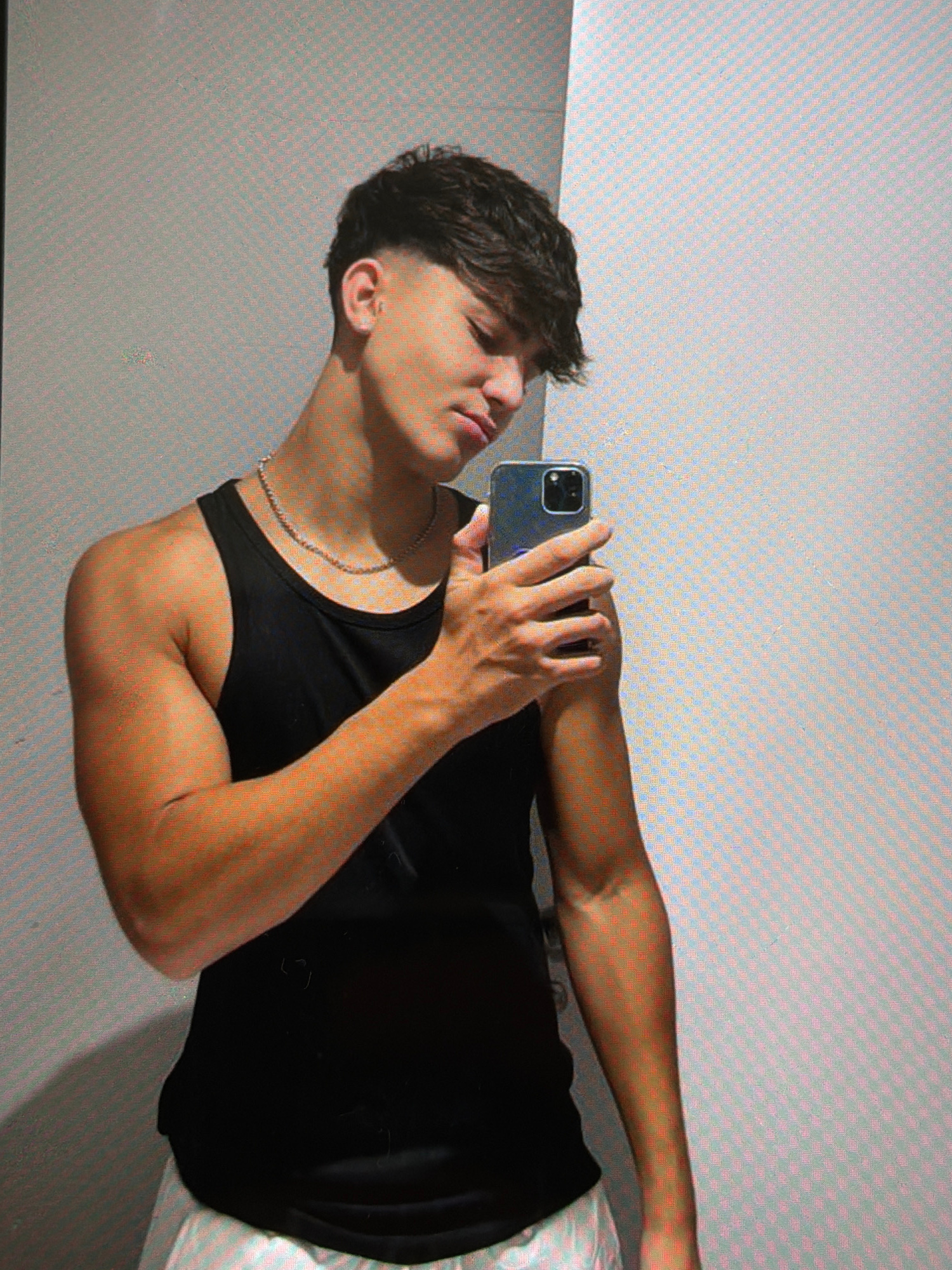 A young man wearing a black tank top and a silver chain is holding a smartphone. He appears to be taking a selfie. The background consists of a light grey wall. No details suggest Burgas, Bulgaria or…read more