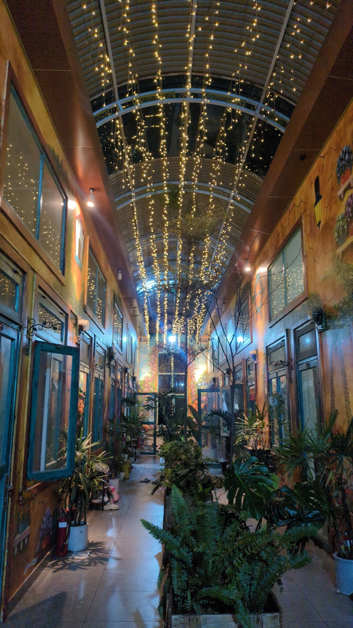 The image captures a whimsical alleyway in Da Lat, Vietnam, known for its artistic and vibrant ambiance. The perspective is from the ground, angled upwards, emphasizing the whimsical architecture and…read more