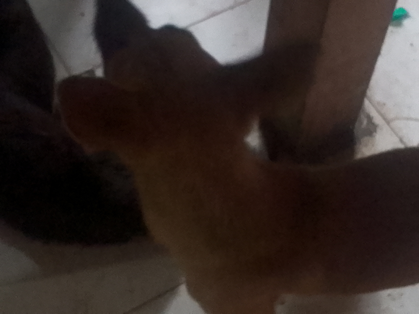 The image shows two dogs indoors. One dog is dark brown or black and partially visible on the left side of the image. The other dog is light brown or tan and appears to be standing, with its back to t…read more