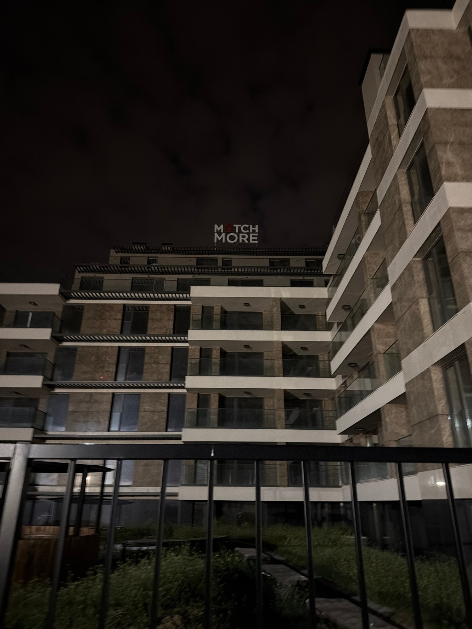 The media file, captured in Sofia, Bulgaria, presents a modern multi-story building at night, oriented 90 degrees clockwise from its natural vertical stance. The building's contemporary facade feature…read more
