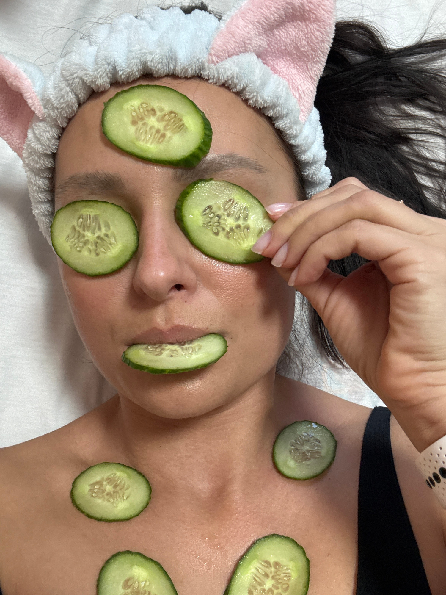 An overhead shot captures a person, likely a woman, undergoing a relaxation or beauty treatment in Chaikovsky, Russia. The individual is lying on a white surface, possibly a spa bed or clean sheet. M…read more