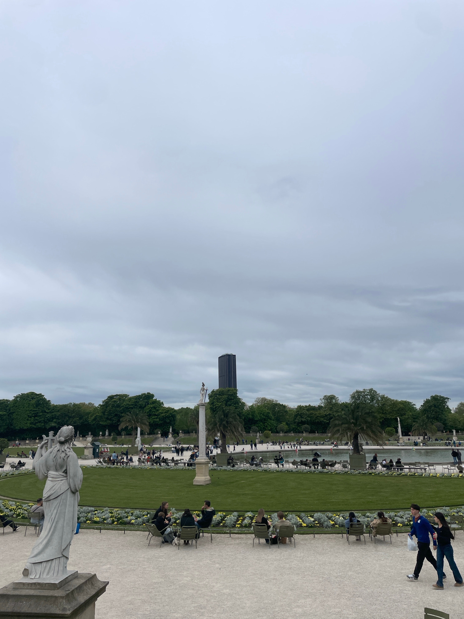 The photograph depicts a scenic view of the Tuileries Garden in Paris, France, characterized by a blend of natural and architectural elements. A classical statue stands prominently in the foreground,…read more