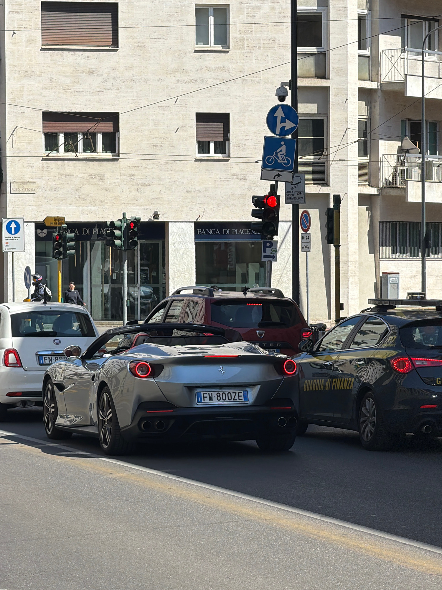 The image shows a street scene in Milan, Italy. The location is identifiable due to the presence of the Banca di Piacenza building and a sign indicating "Porta Vittoria." The street is congested with…read more