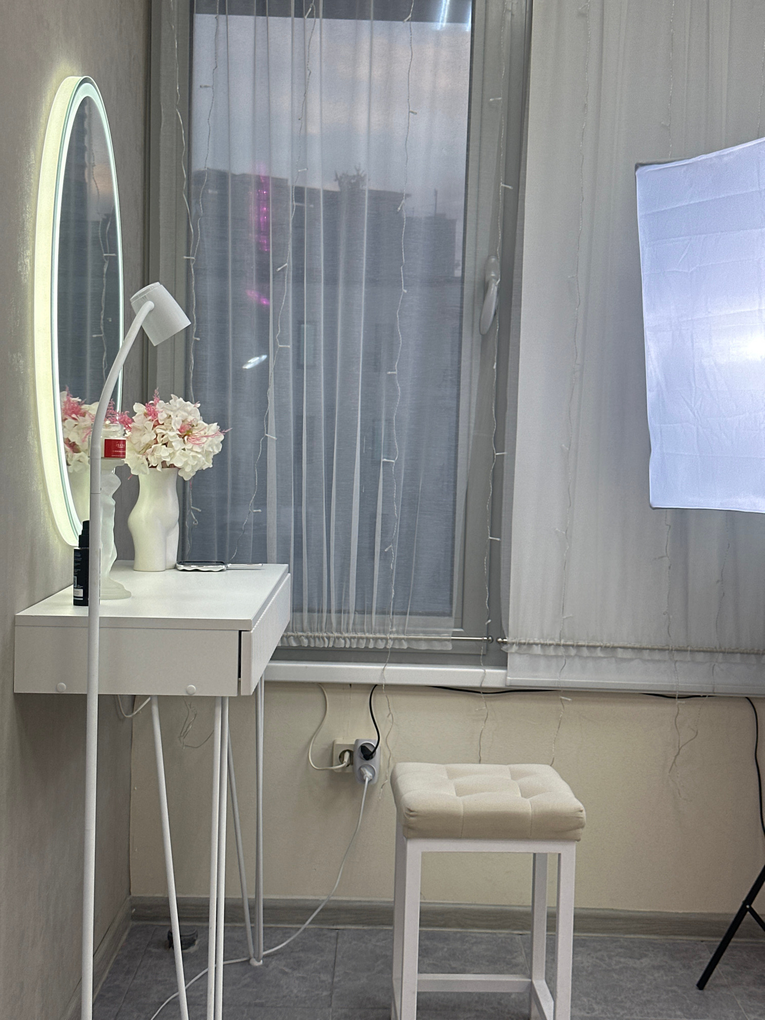 The image captures an indoor setting, possibly a studio or a room configured for product display or photography, located in Sochi, Russia. The scene is dominated by white and light gray tones, illumin…read more