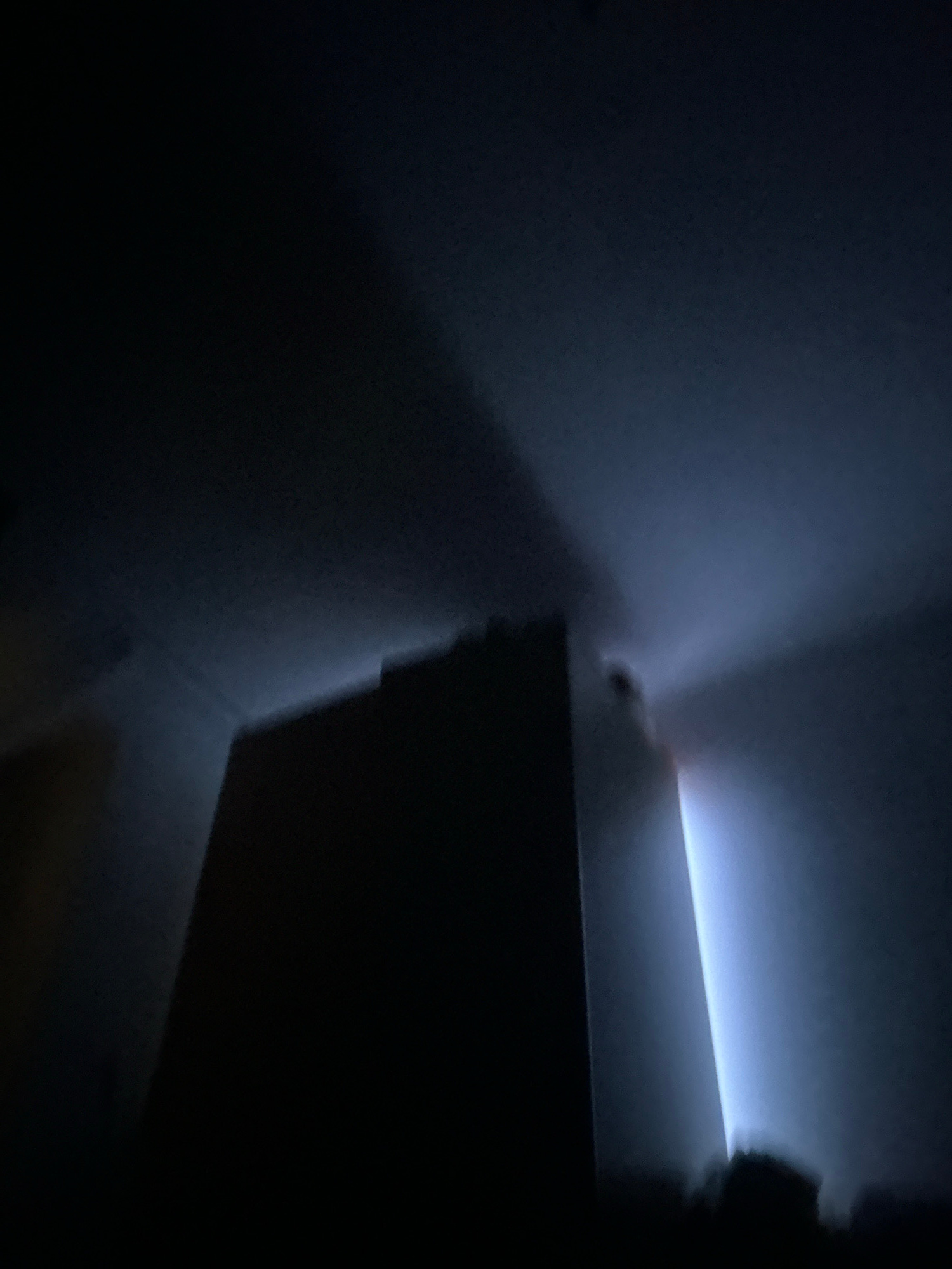The image presents a dimly lit interior space. A stark contrast exists between the areas illuminated by a cool, bluish light source and the deep shadows that dominate most of the scene. In the illumin…read more