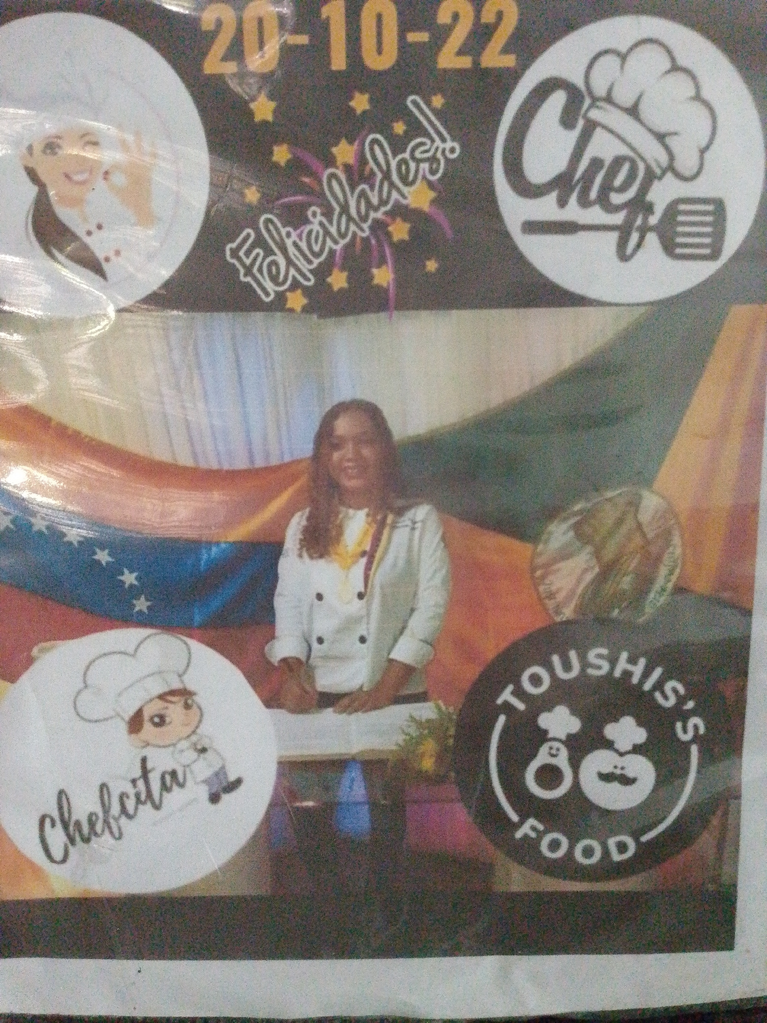 The image appears to be a celebratory poster, possibly for a chef or cooking-related event. The date "20-10-22" is displayed at the top. The word "Felicidades!" is also present. A woman stands in the…read more