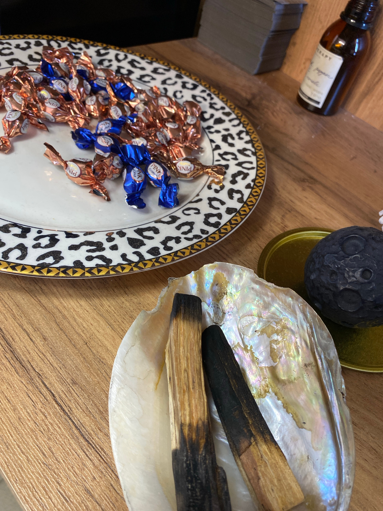 A high-angle shot shows a wooden surface with several items arranged on it. In the upper left is a stack of gray, rectangular objects and a brown glass bottle with a white label. To the right of these…read more
