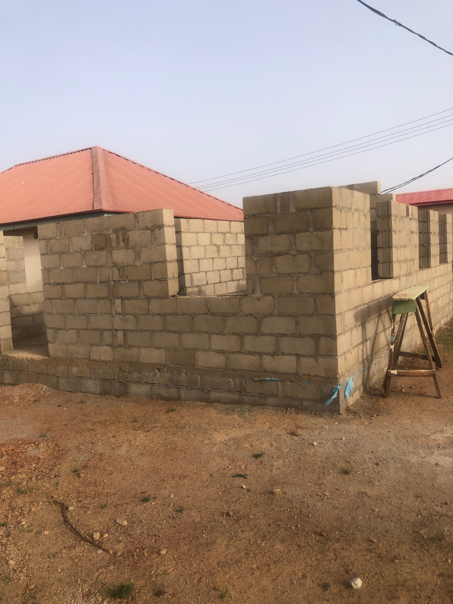 A partially constructed building is visible in a location within Jos, Nigeria. The building is made from gray concrete blocks and a red roof is visible on a part of the building. There is a wooden fra…read more