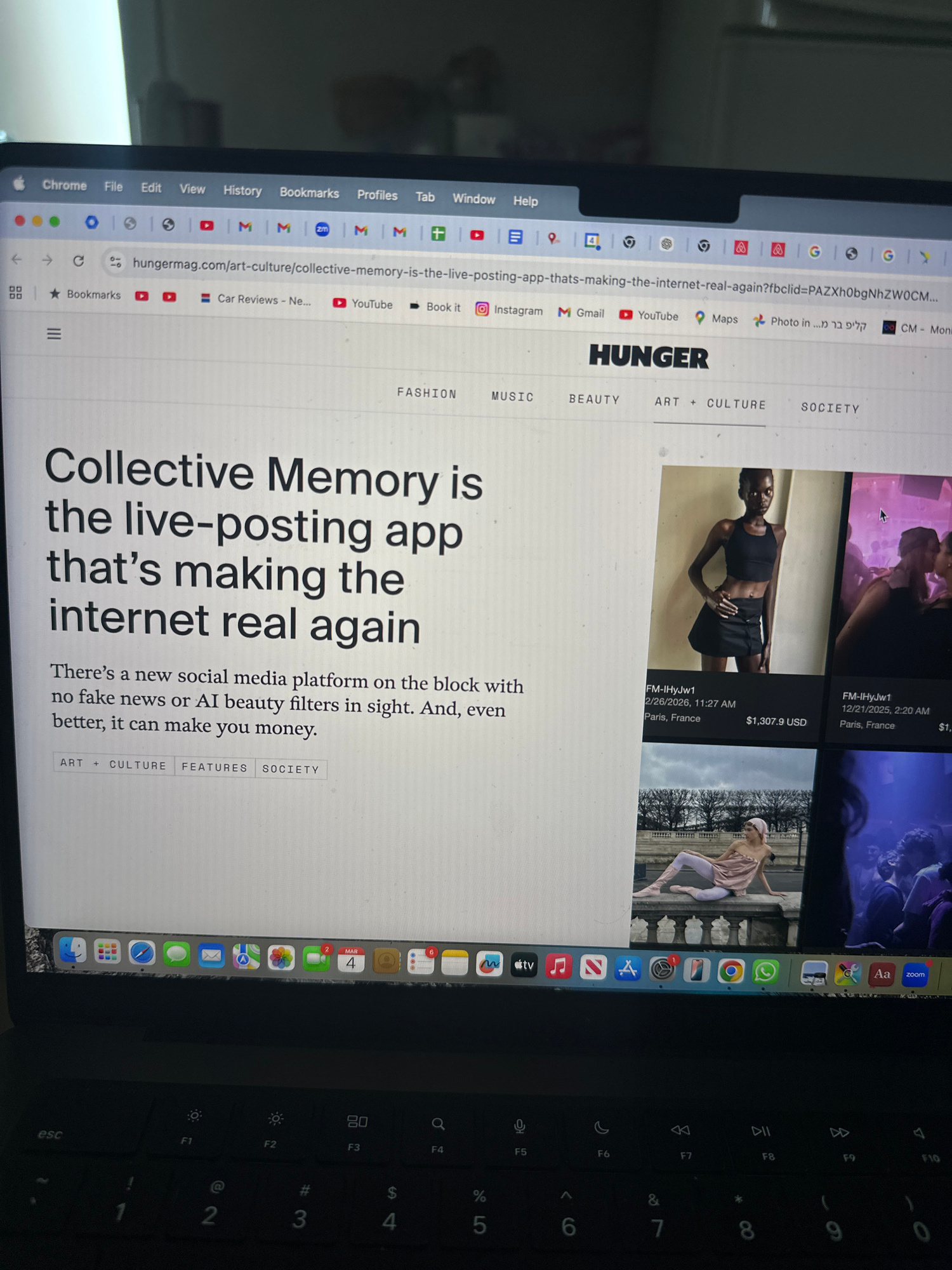 The image displays a close-up, angled view of a MacBook laptop screen and the upper portion of its keyboard, situated in a dimly lit indoor environment. The laptop screen occupies the majority of theβ¦read more