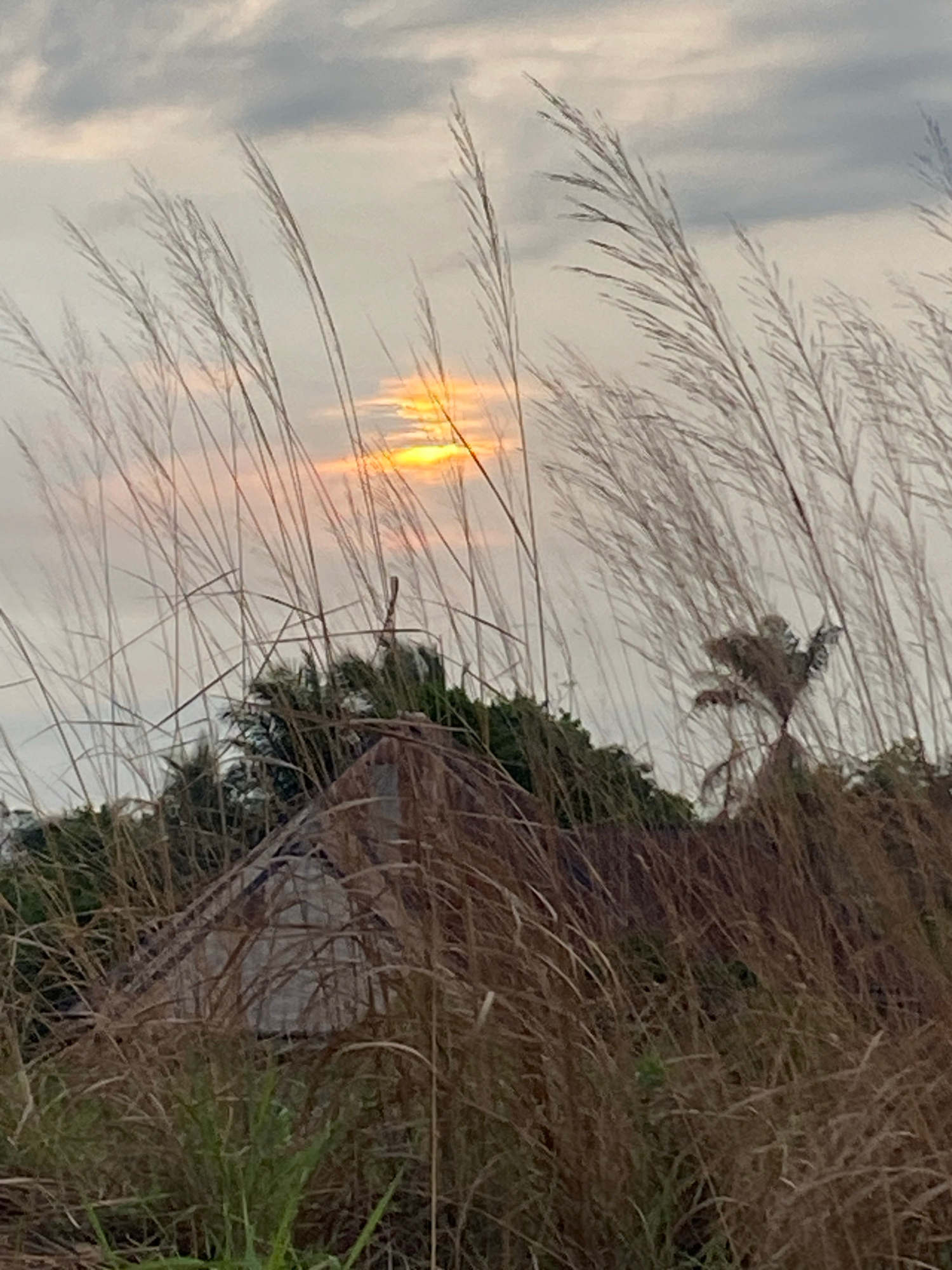 The image, taken in Achara, Nigeria, captures a tranquil outdoor scene, likely during sunrise or sunset, given the distinct light in the sky. In the foreground, numerous long, feathery plumes of light…read more