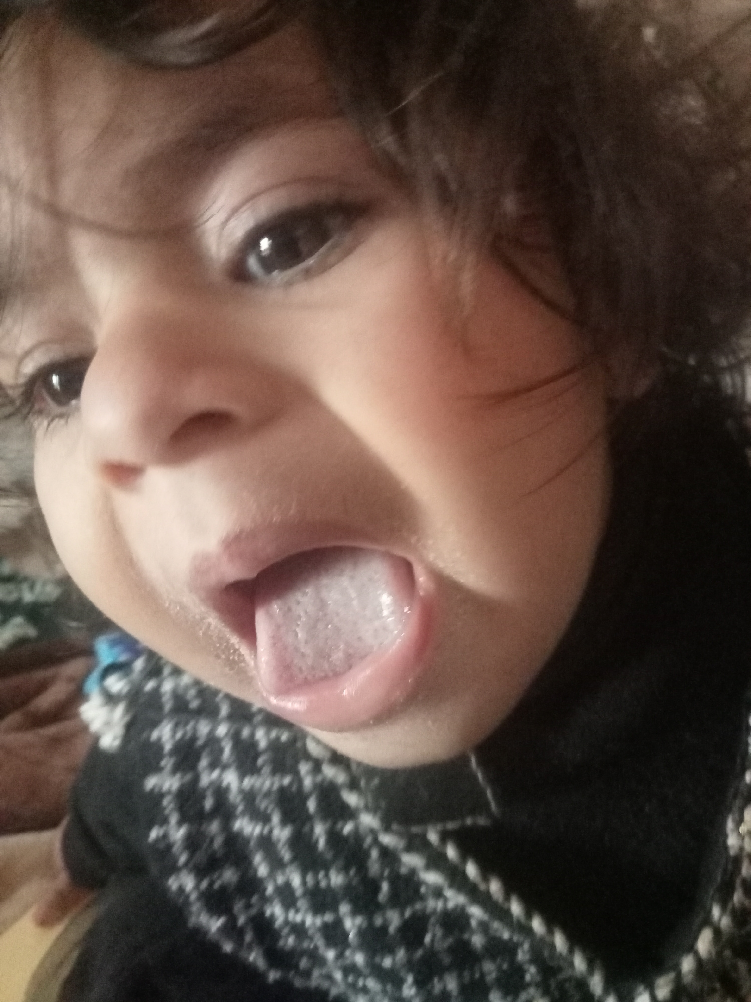 This is a close-up, slightly high-angle portrait of an infant or young child, located in Mansehra, Pakistan. The subject has dark, wide-open eyes looking upward and to the left, and dark, curly hair.…read more