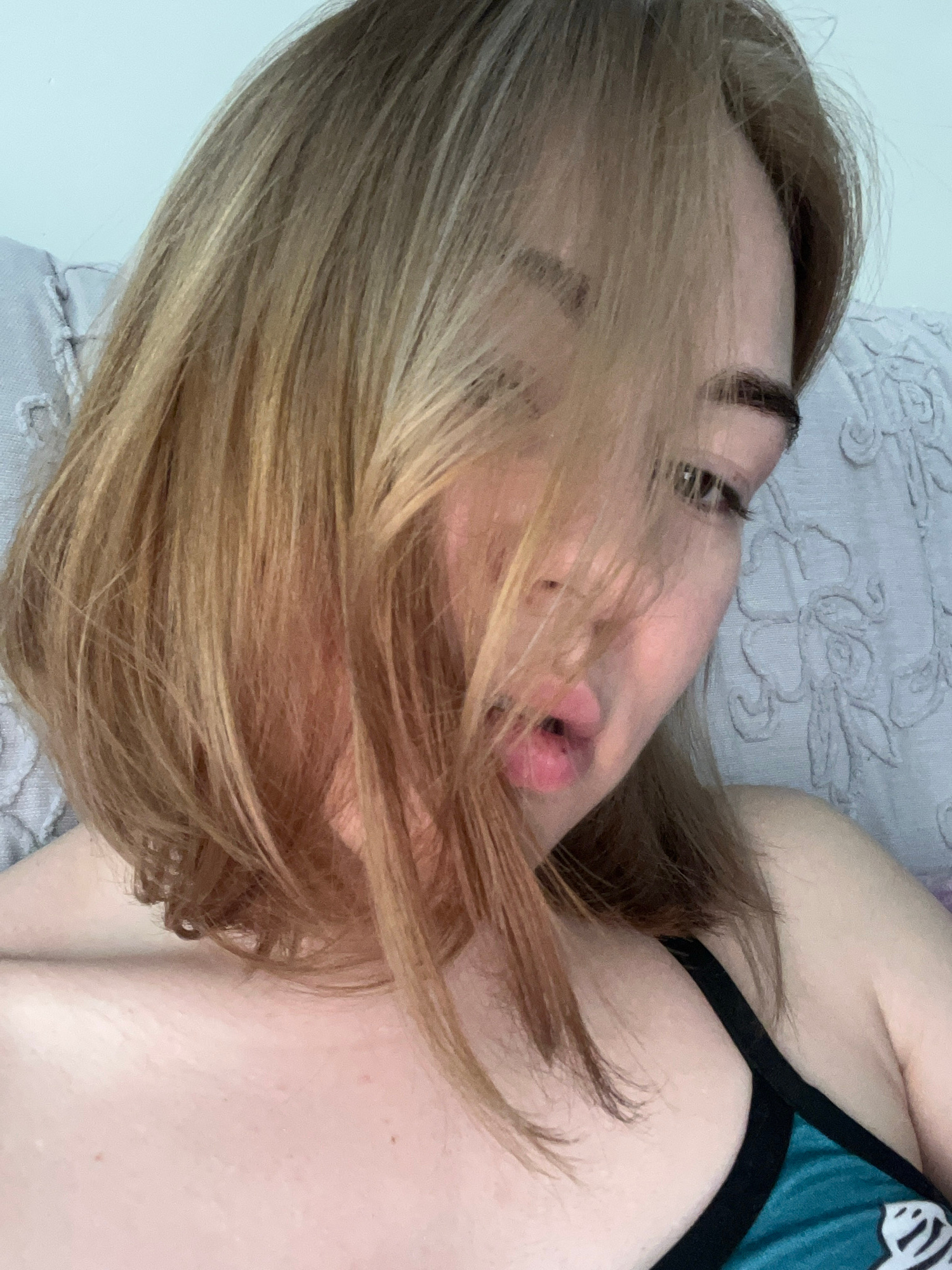 The scene, located in Boreti, Montenegro, depicts a close-up view of a female individual, likely a young adult, from the chest upwards. Her shoulder-length hair, colored light brown to blonde with lig…read more