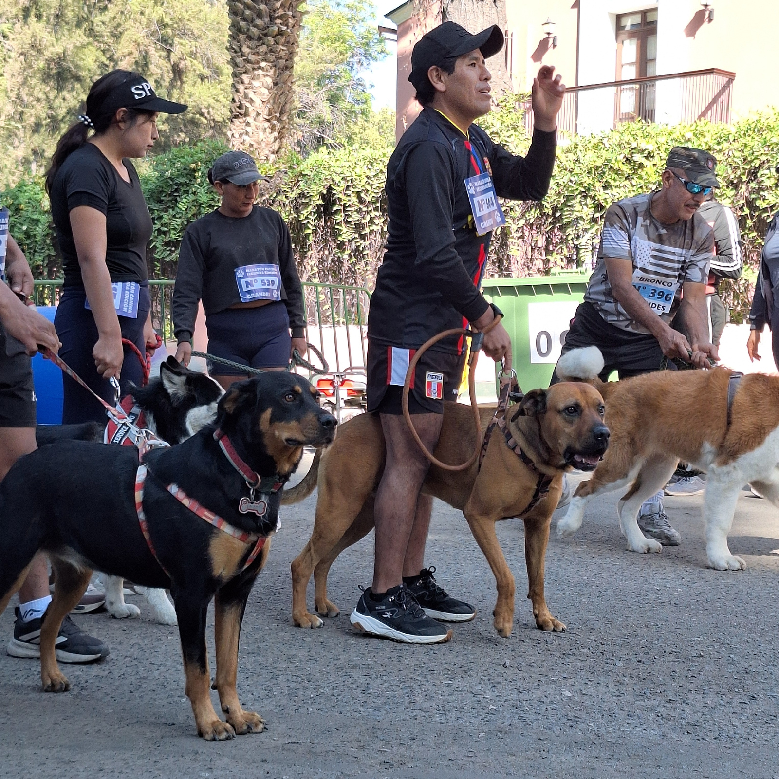 This outdoor scene shows a group of people and dogs participating in a race or walking event, likely the "Maraton Canina - Segunda Edicion" (Dog Marathon - Second Edition) as indicated on participantβ¦read more