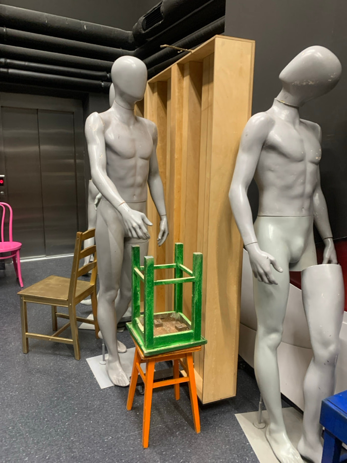 The image depicts an interior scene in Nowy Targ, Poland. The environment features a dark, possibly charcoal-grey, floor and dark walls. On the left, silver metallic elevator doors are visible, displa…read more