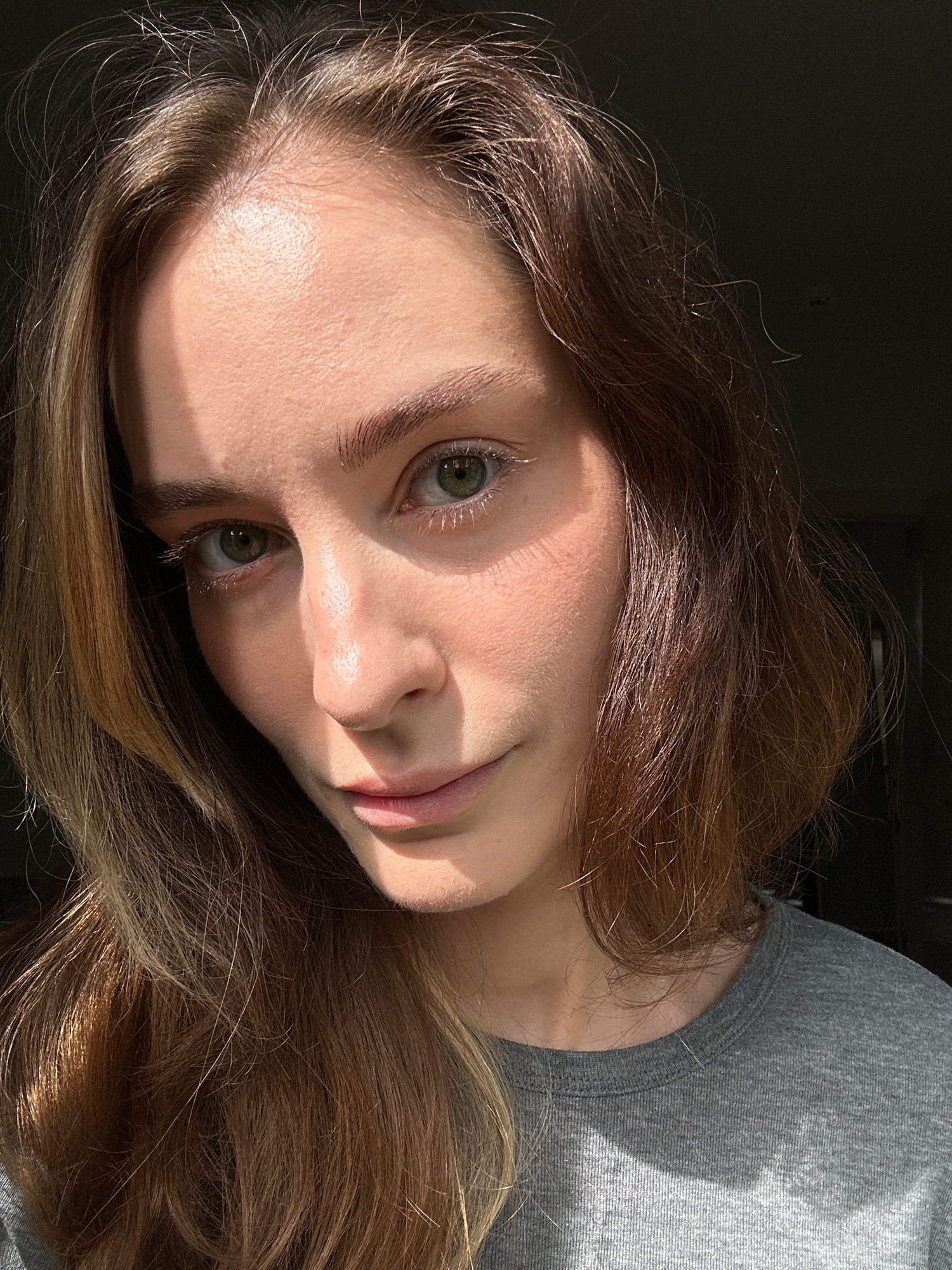 The media file presents a close-up, angled portrait of a person, likely a young adult, predominantly featuring their head and upper torso. The image is rotated, with the person's head tilted significa…read more