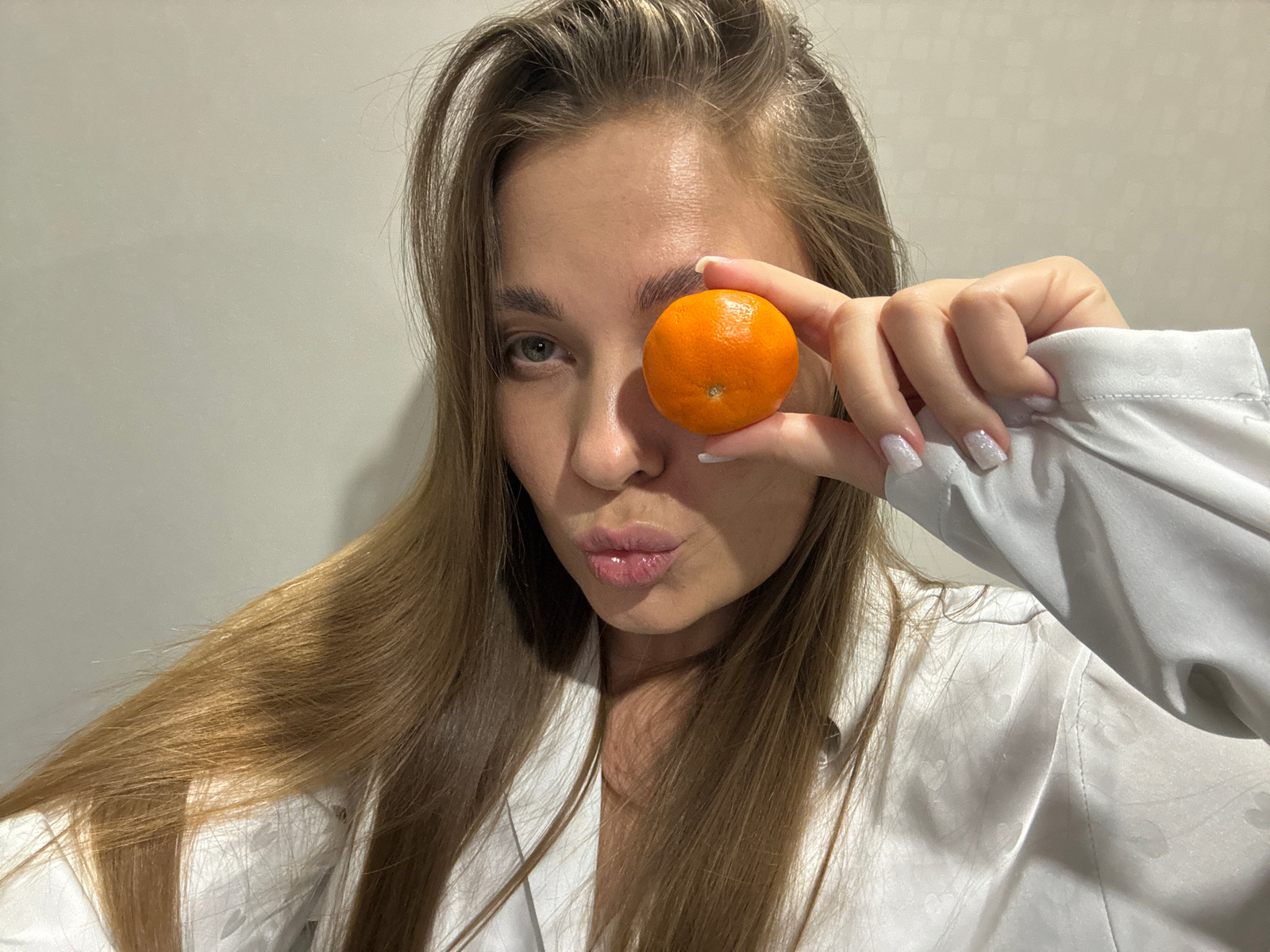 The media file displays a head-and-shoulders portrait of a woman, oriented upside down due to a 90-degree counter-clockwise rotation. She has long, light brown hair, fair skin, and full, glossy lips.…read more