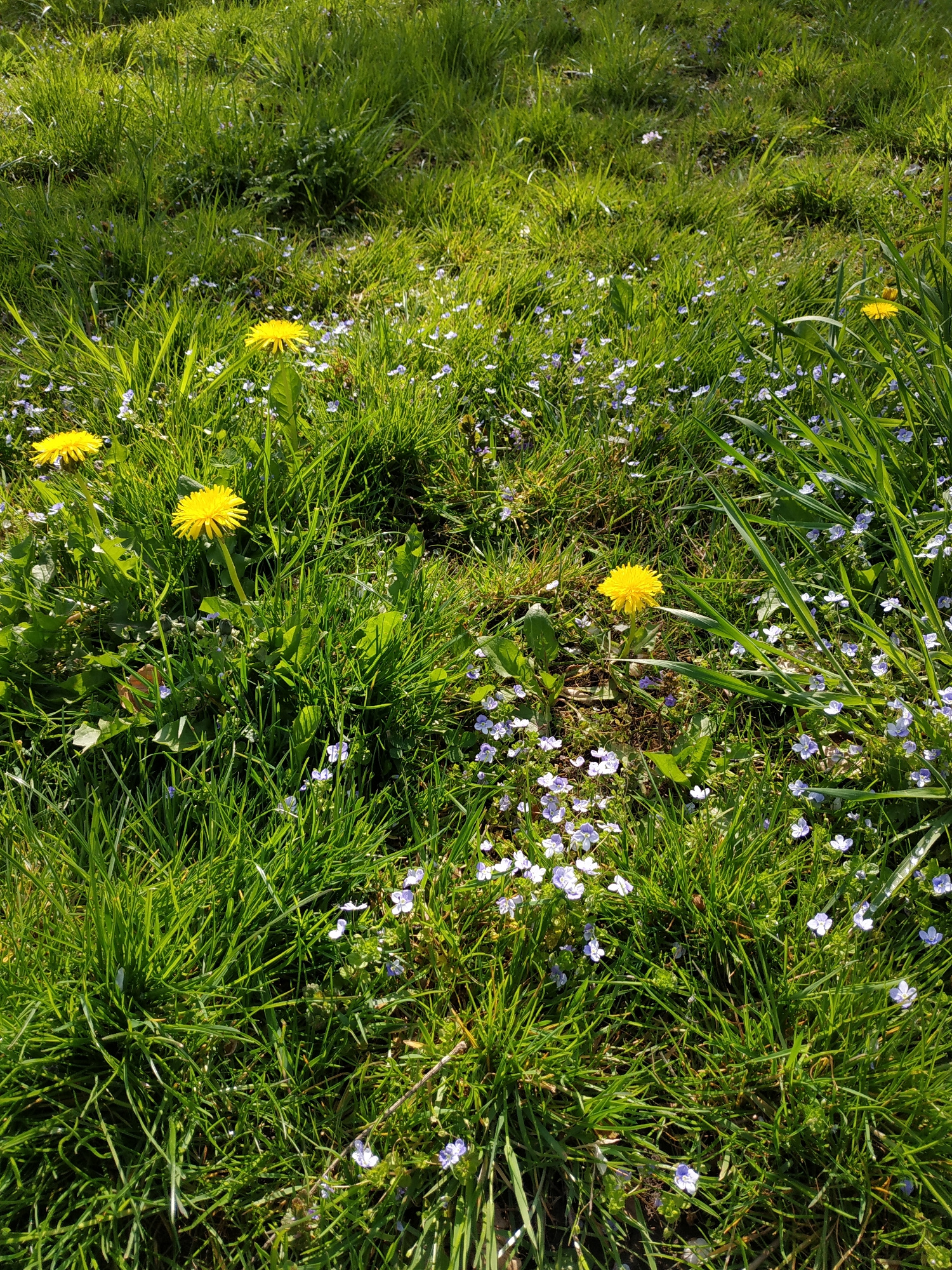 This media file captures a vibrant, close-up view of a grassy patch in Dortmund, Germany. The scene is dominated by lush, green grass blades, which appear healthy and somewhat tall, with some individu…read more