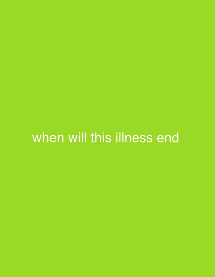 The image is a solid green background with the white text "when will this illness end" centered horizontally and vertically. There are no indications of location of the city of Wealden, United Kingdom…read more