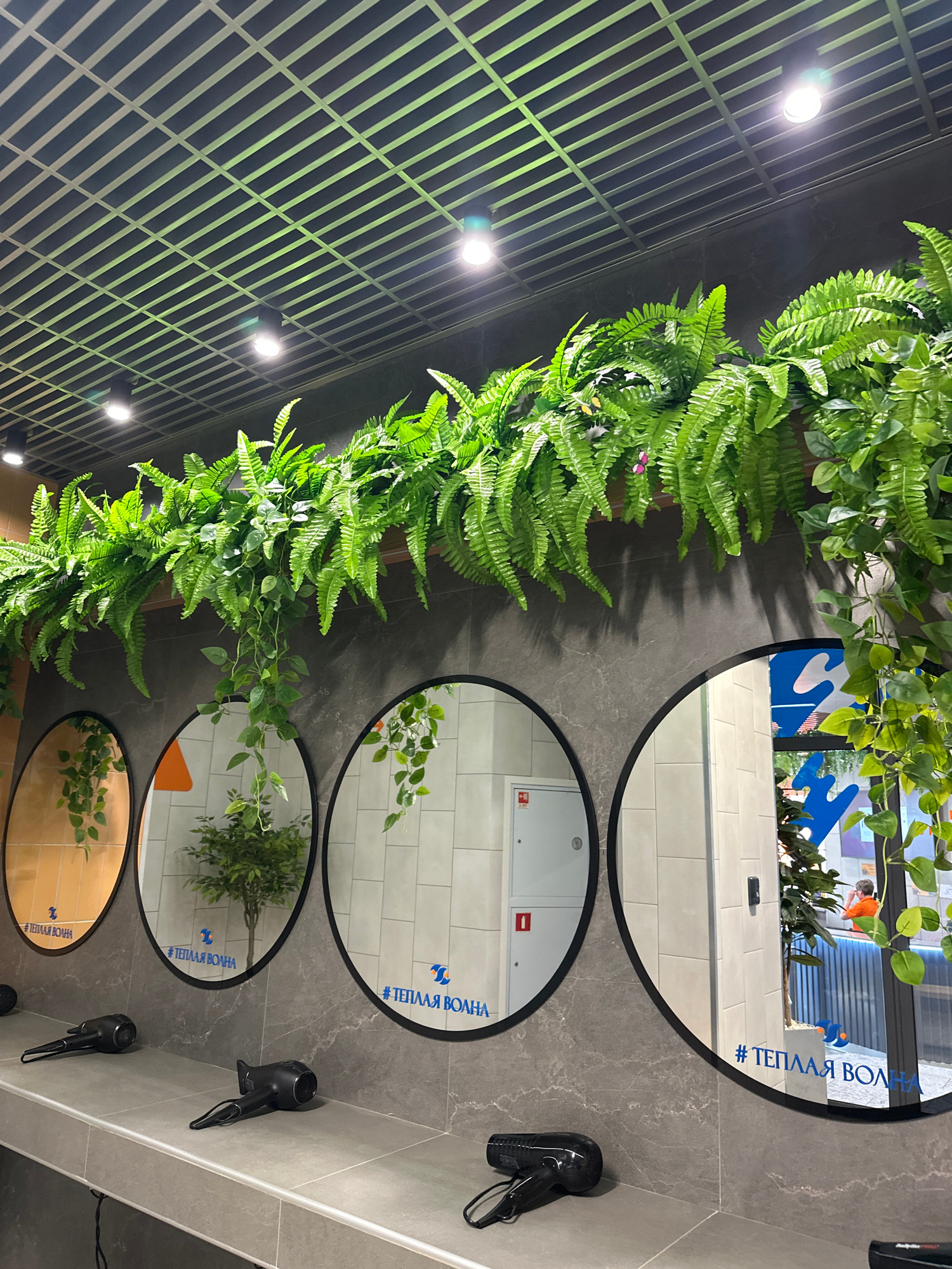 A photo taken inside what appears to be a building in Votkinsk, Russia, shows a decorated ceiling and wall with round mirrors. The wall is clad in a mottled gray material, likely stone or tile, with f…read more