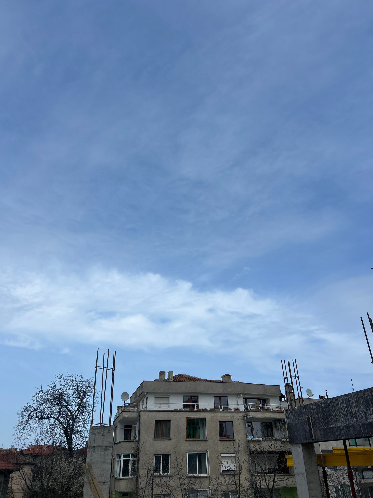 The image shows a low-angle view of a building in Tsarevo, Bulgaria, under a bright, slightly cloudy sky. The building appears to be a multi-story residential structure. Construction or renovation is…read more