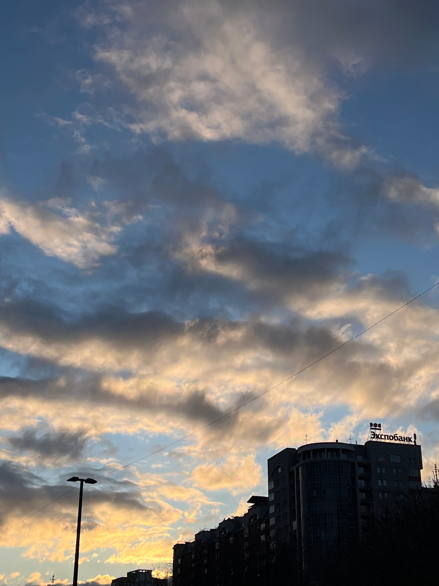 The image, which appears to be rotated 90 degrees counter-clockwise from its intended viewing orientation, depicts a dynamic cityscape and sky in Krasnoyarsk, Russia. When viewed correctly, the photog…read more