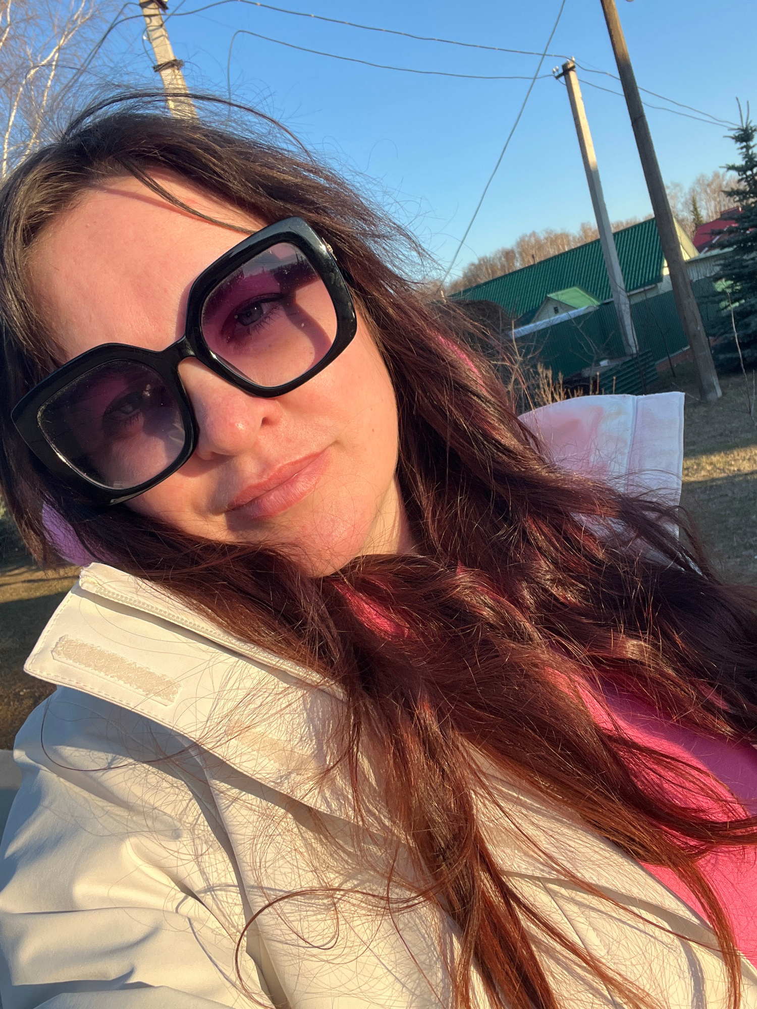 A person wearing sunglasses is lying on the ground. The background includes a blue sky, power lines, and a building with a green roof. The location is Noviy, Russia.