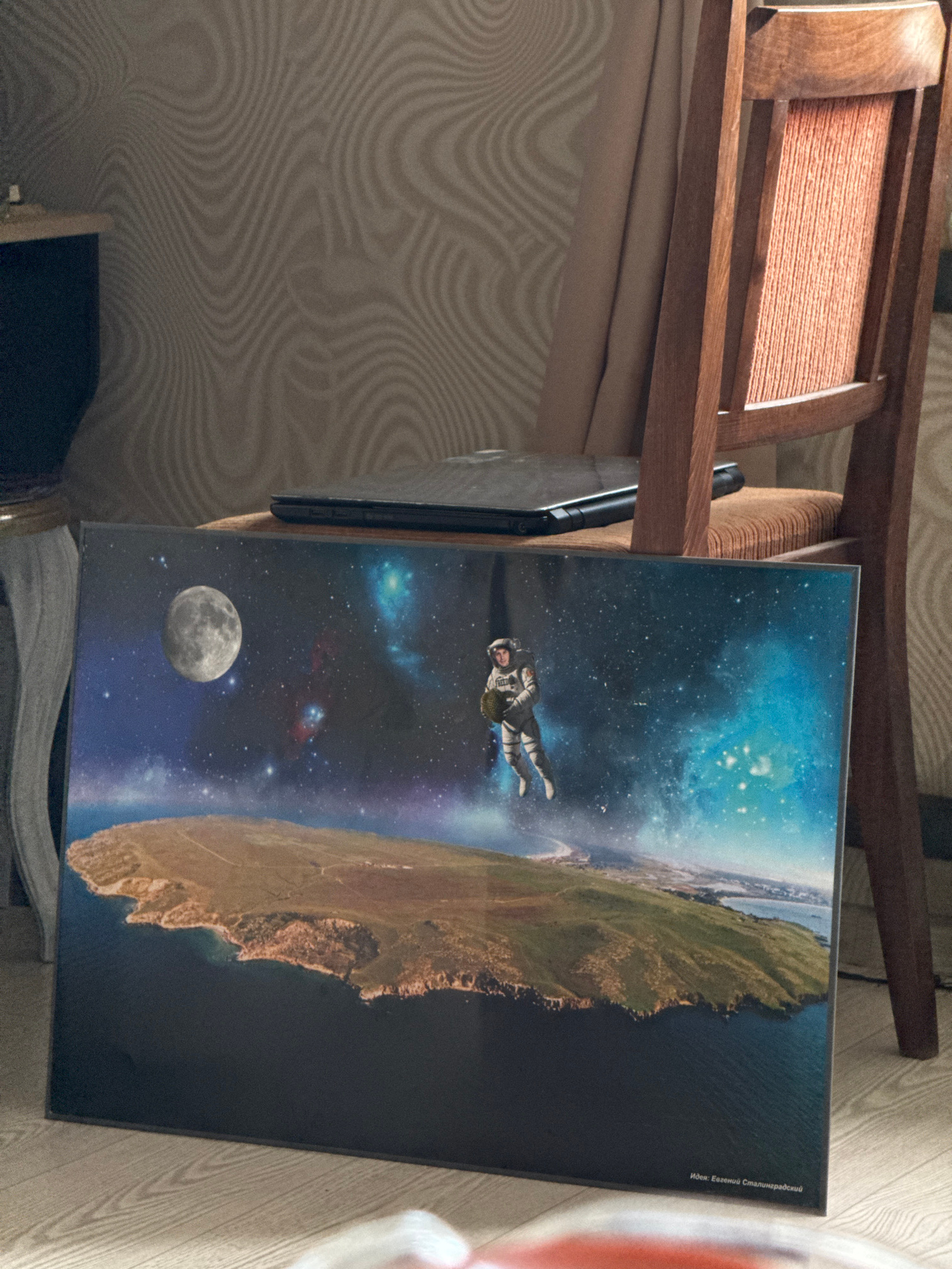 A photograph shows a scene in what appears to be an interior setting, with various objects arranged haphazardly. A wooden chair with a woven seat is partially visible in the upper left quadrant. Resti…read more