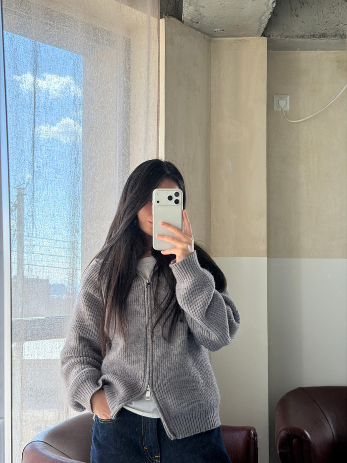 An individual is depicted in a mirror selfie taken indoors in Zovuni, Armenia. The subject, identifiable by long dark hair, obscures their face with a white smartphone held in the right hand. They wea…read more