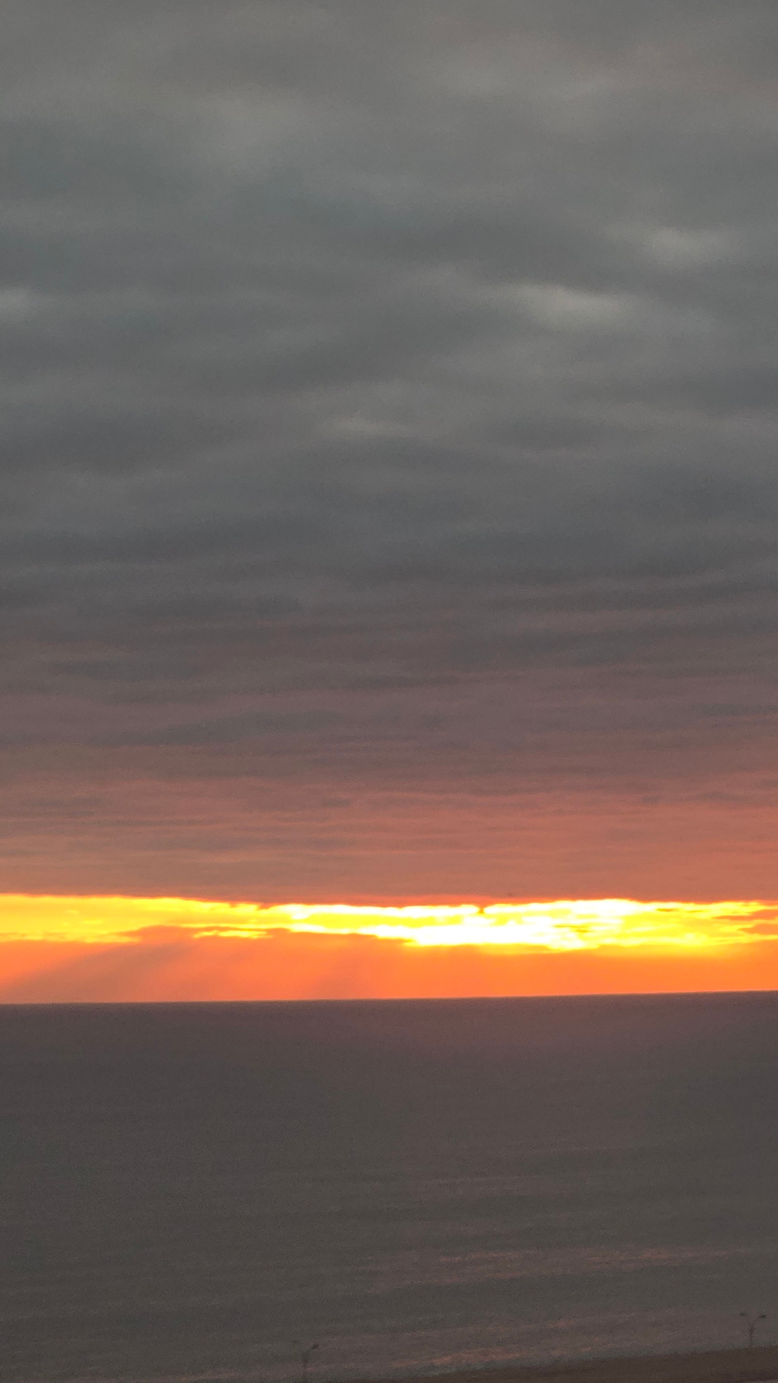 The image depicts a vertical slice of the sky over Iquique, Chile, during what appears to be a sunset. The left portion of the image shows a cloudy, grey sky. Adjacent to this is a section illuminated…read more
