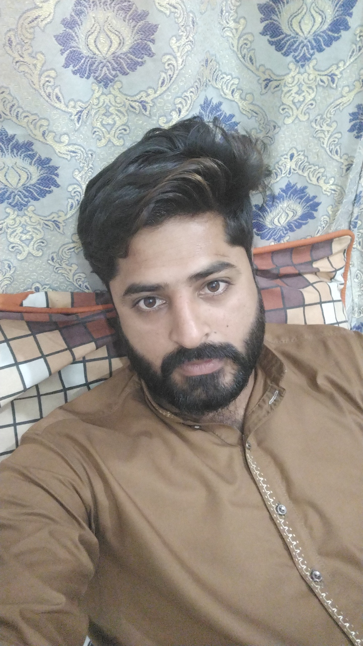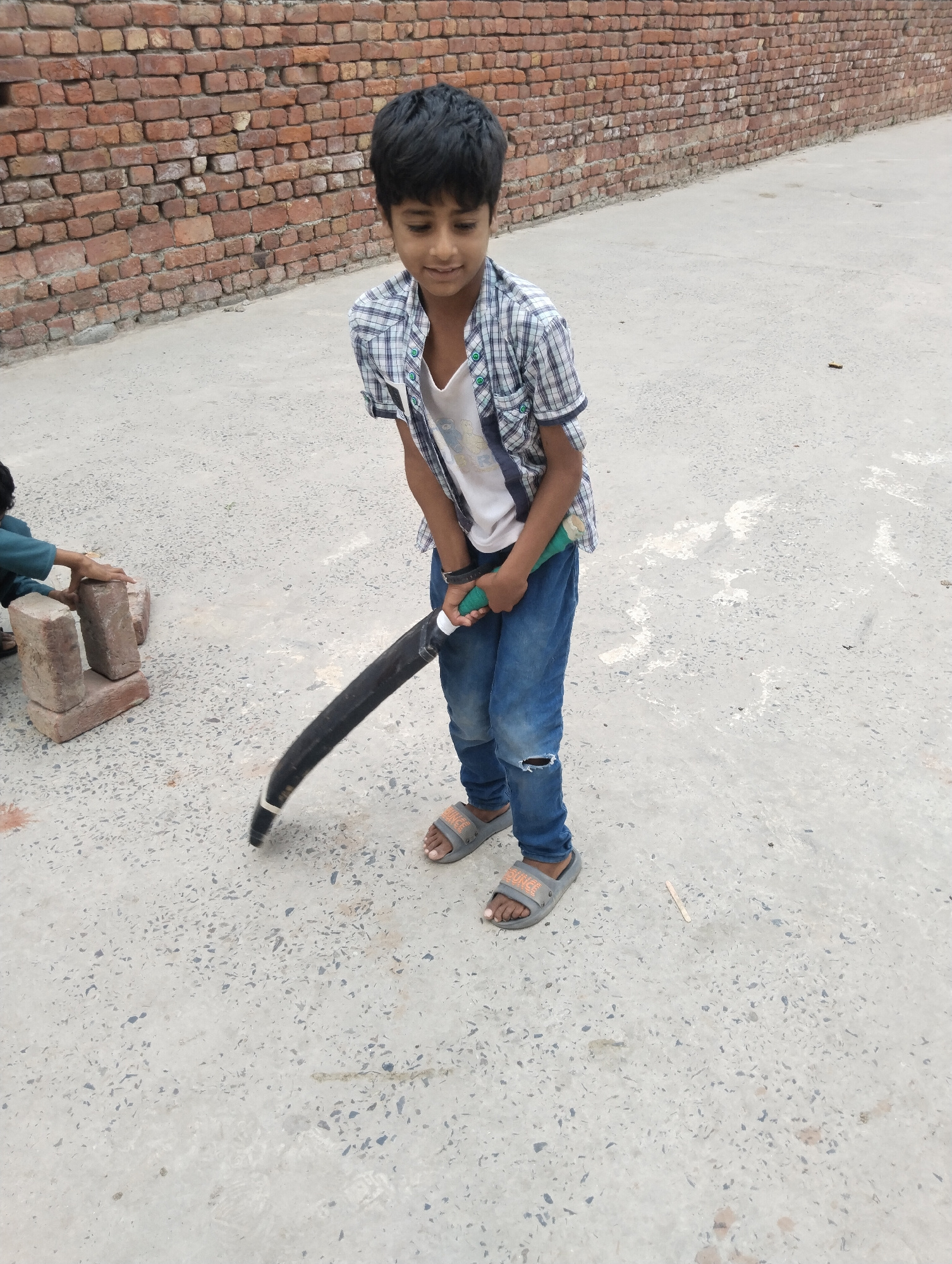 A young boy is the central focus of this outdoor image, captured in Dera Chahal, Pakistan. He has dark hair and is wearing a blue and white plaid short-sleeved shirt over a white t-shirt, blue jeans w…read more