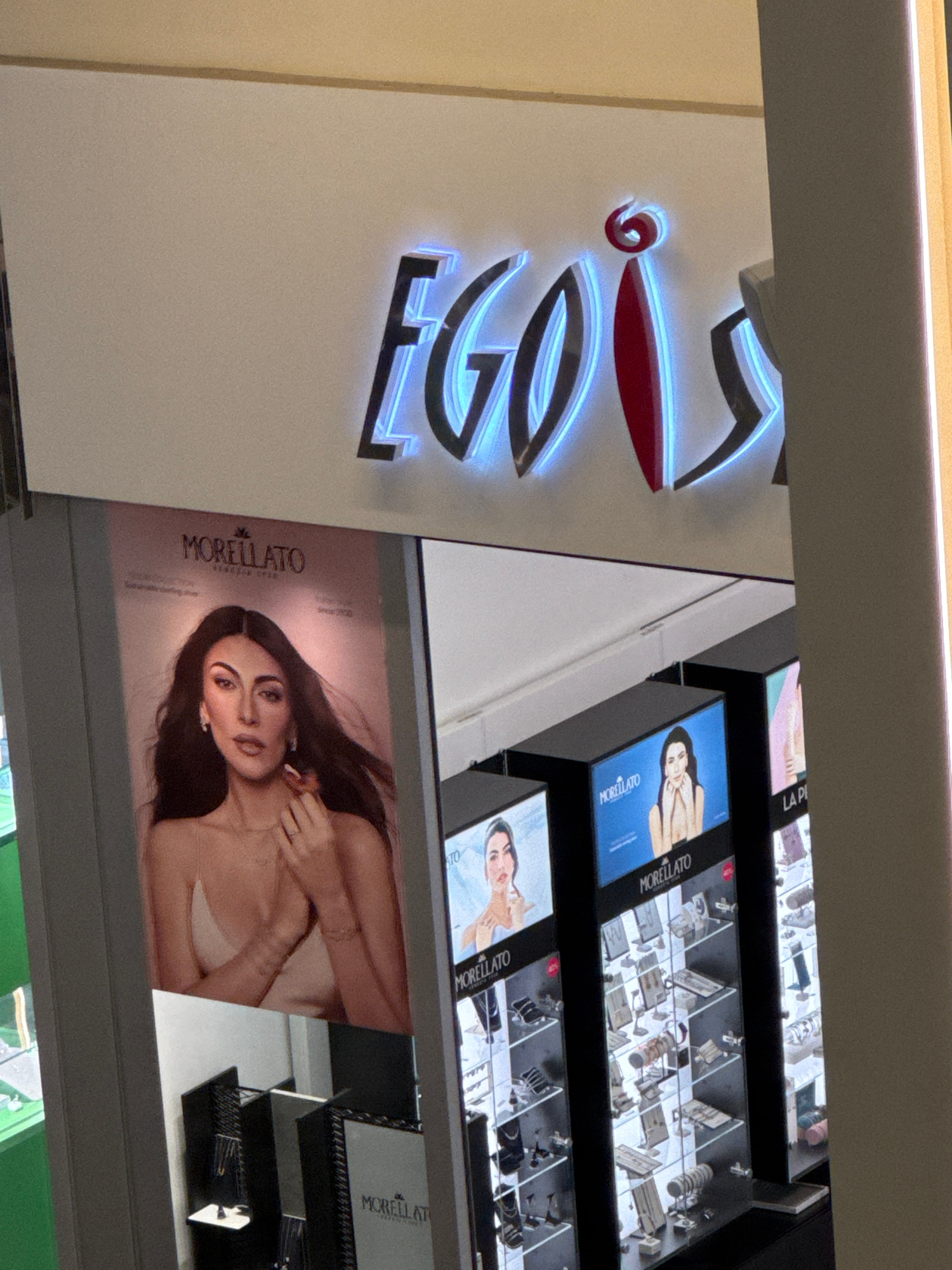 A vertically-oriented eye-level shot depicts an interior scene, likely a store, in Yerevan, Armenia. In the foreground is a storefront display with the name "MORELLATO" appearing vertically on a sign…read more