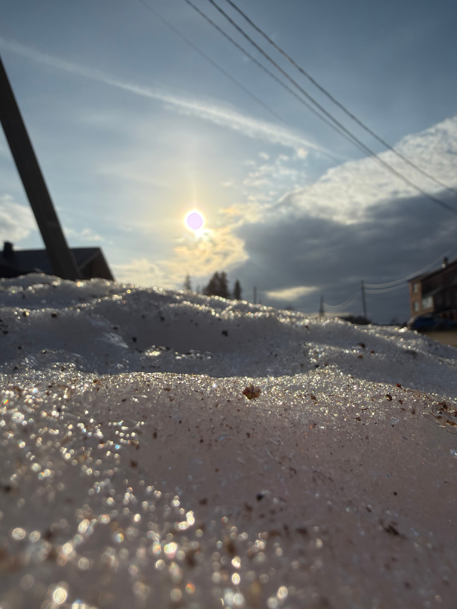 The image, taken in Chaikovsky, Russia, captures a close-up, low-angle perspective of a sparkling snow or ice bank against a bright sky. The original image appears rotated 90 degrees clockwise; when vā¦read more