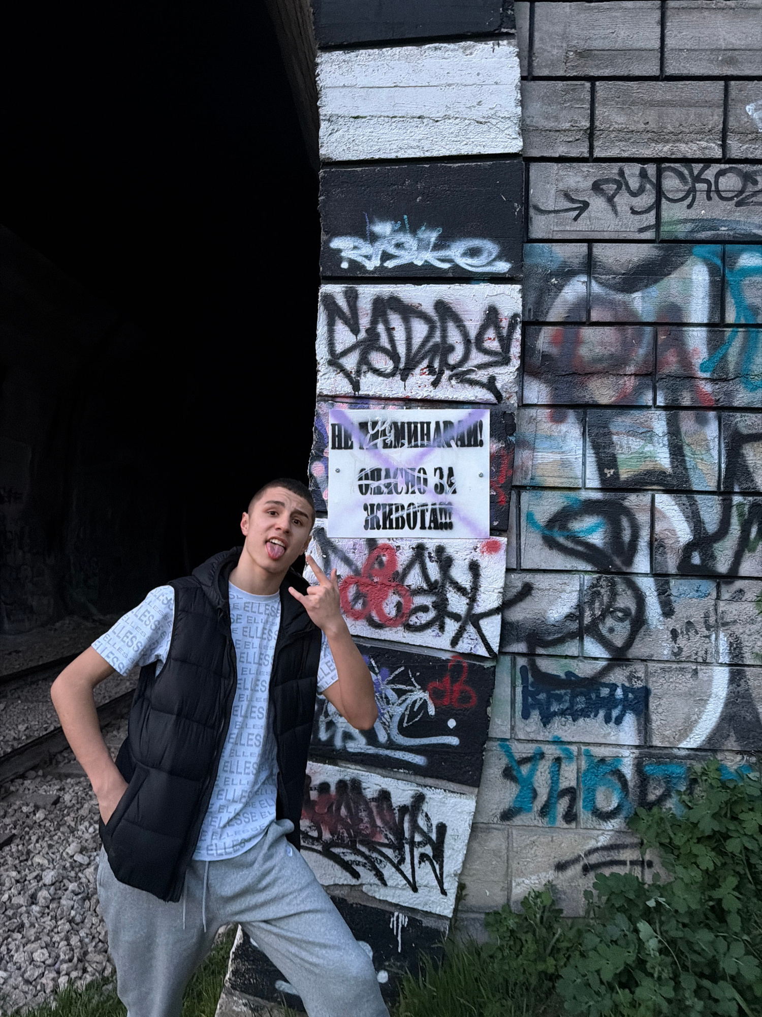 A young male subject stands at the entrance of a dark tunnel next to a heavily graffitied wall in Veliko Tarnovo, Bulgaria. The male, appearing to be in his late teens or early twenties, is positioned…read more
