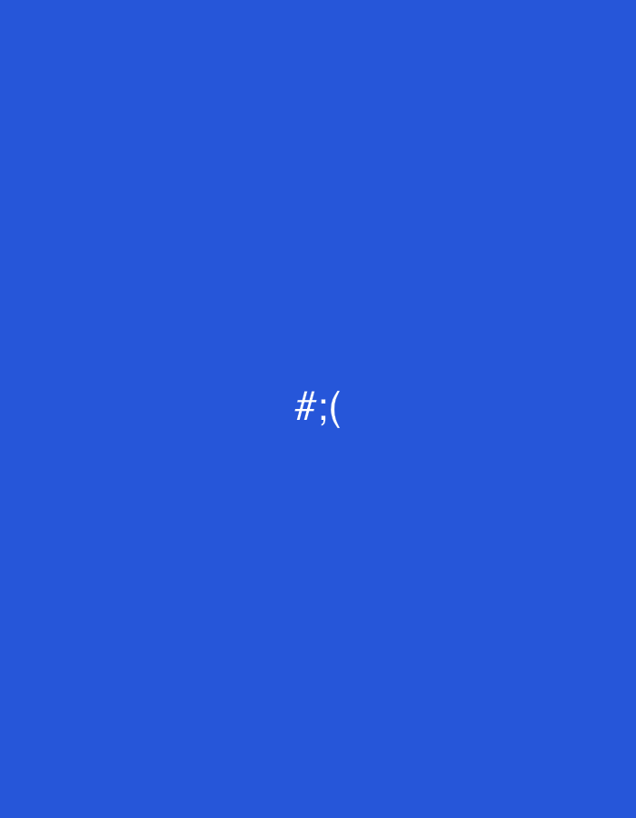 The image shows a plain blue background with the text "#;(" in white in the center. There is no location information present.
