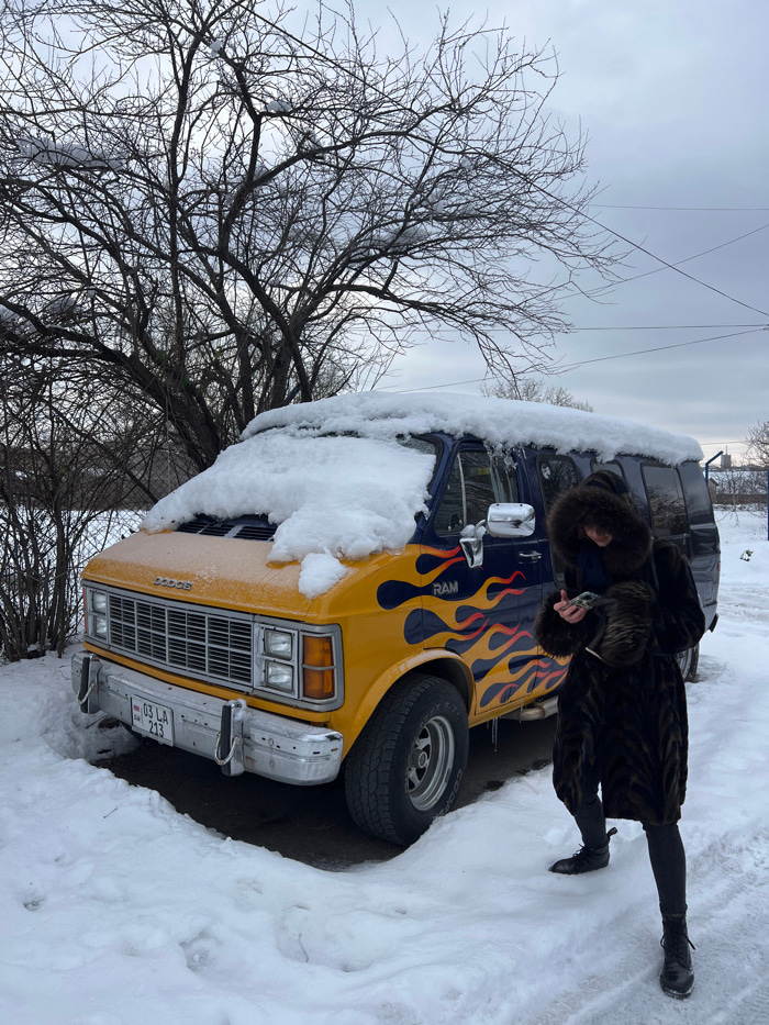 The image displays a snow-covered urban scene in Belgrade, Serbia, under an overcast sky. A large, bare deciduous tree with snow-dusted branches dominates the left background, with power lines visible…read more