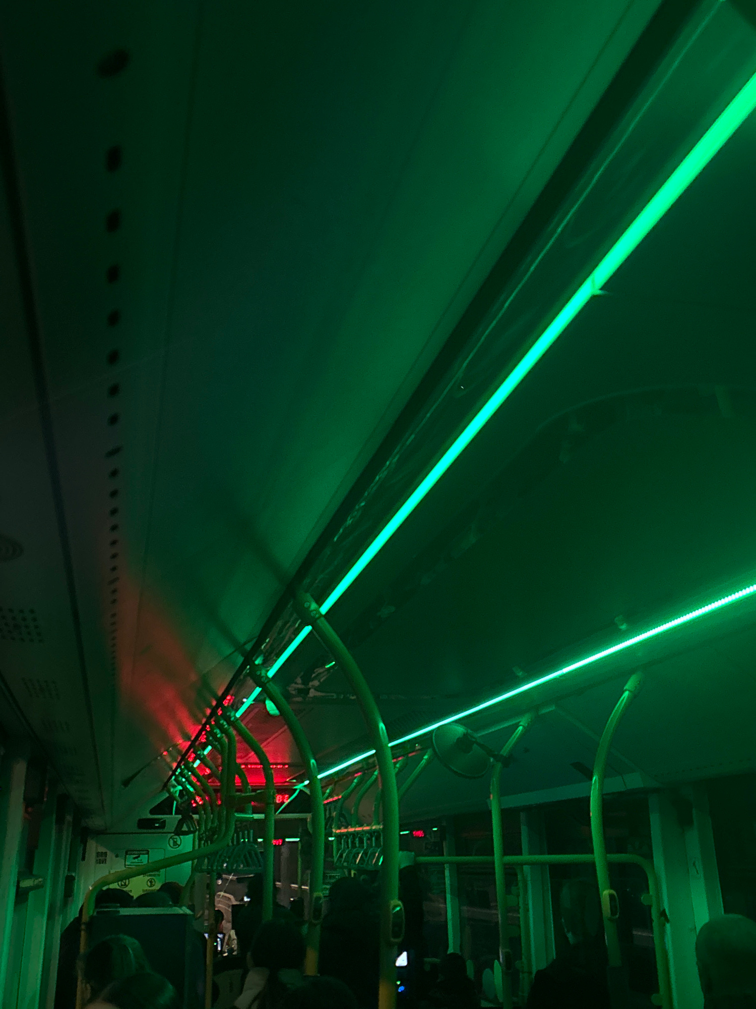 The image depicts the interior of a submarine-themed attraction in Varna, Bulgaria. A curved wall of the submarine extends along the left side of the frame, illuminated by green neon lights. A series…read more