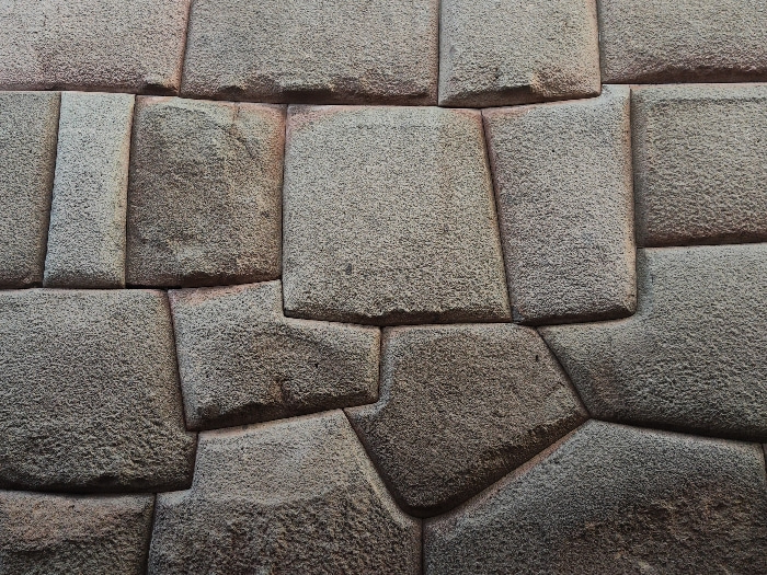 A close-up showcases a meticulously crafted stone wall, featuring irregularly shaped blocks of grey stone. The stones are fitted together with remarkable precision, demonstrating minimal gaps or morta…read more