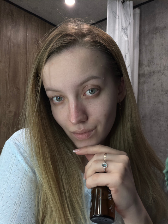 A female individual, appearing to be in her twenties or early thirties, is captured in an indoor setting, likely a bathroom, in Reshetnikovo, Russia. She possesses fair skin, long light brown hair wit…read more