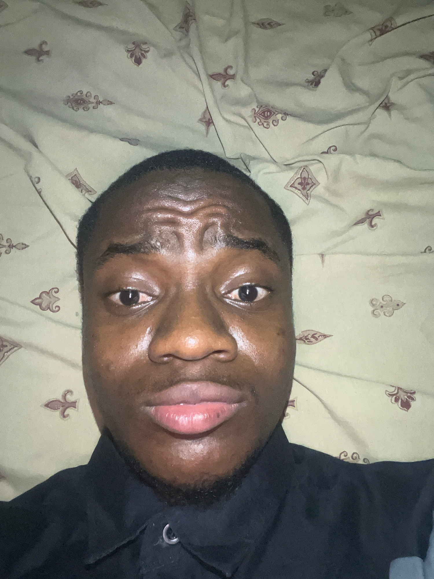 A person lies supine on a bed covered with patterned beige linens. The person has dark skin, short hair, and a beard. They are wearing a dark-colored shirt. The location is not discernible from the image. Therefore, it is impossible to determine if the image was taken in Minna, Nigeria. | Open Wire