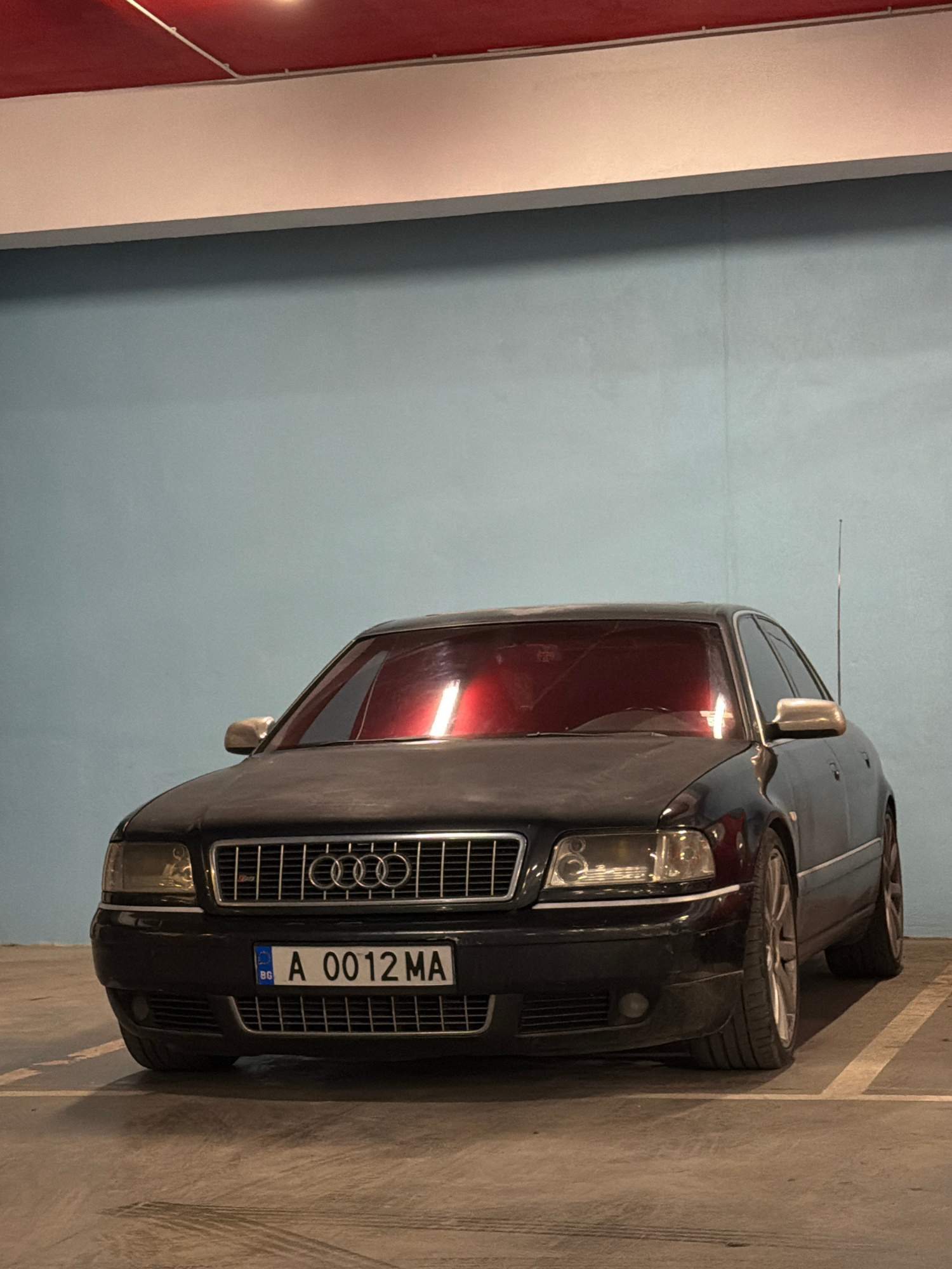 A medium shot shows a black Audi passenger car parked in what appears to be an indoor parking facility. The car is positioned at an angle within its parking space. It has the Bulgarian license plate "…read more