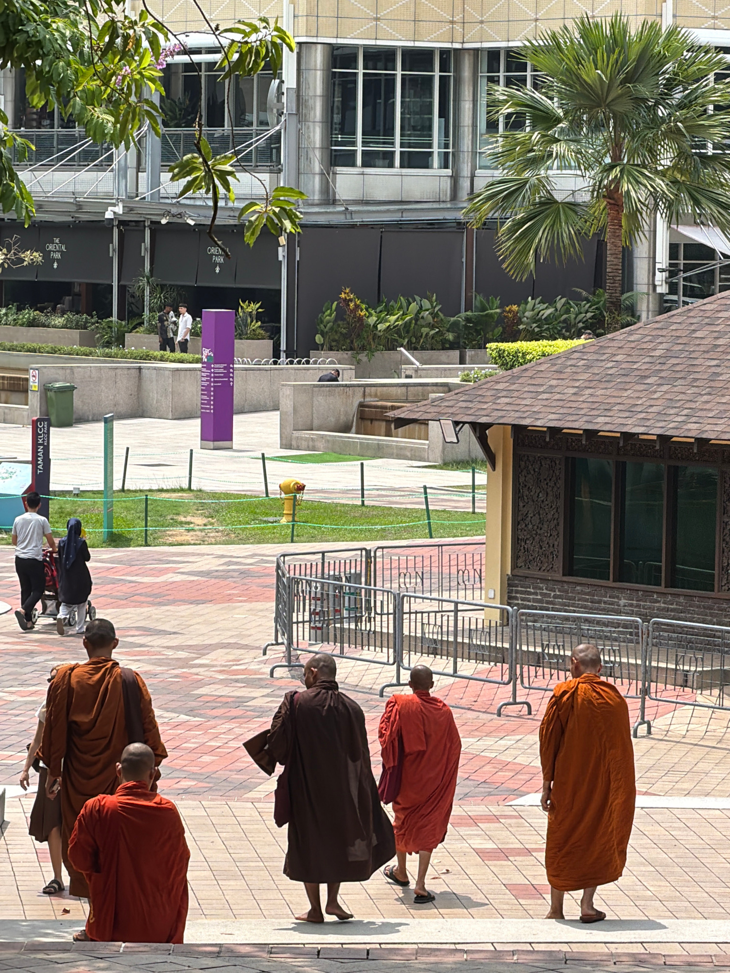The image depicts a scene in Kuala Lumpur, Malaysia, potentially in or near the KLCC Park. The environment includes modern buildings, trees (including palm trees), a tiled walkway, and a green grassy…read more