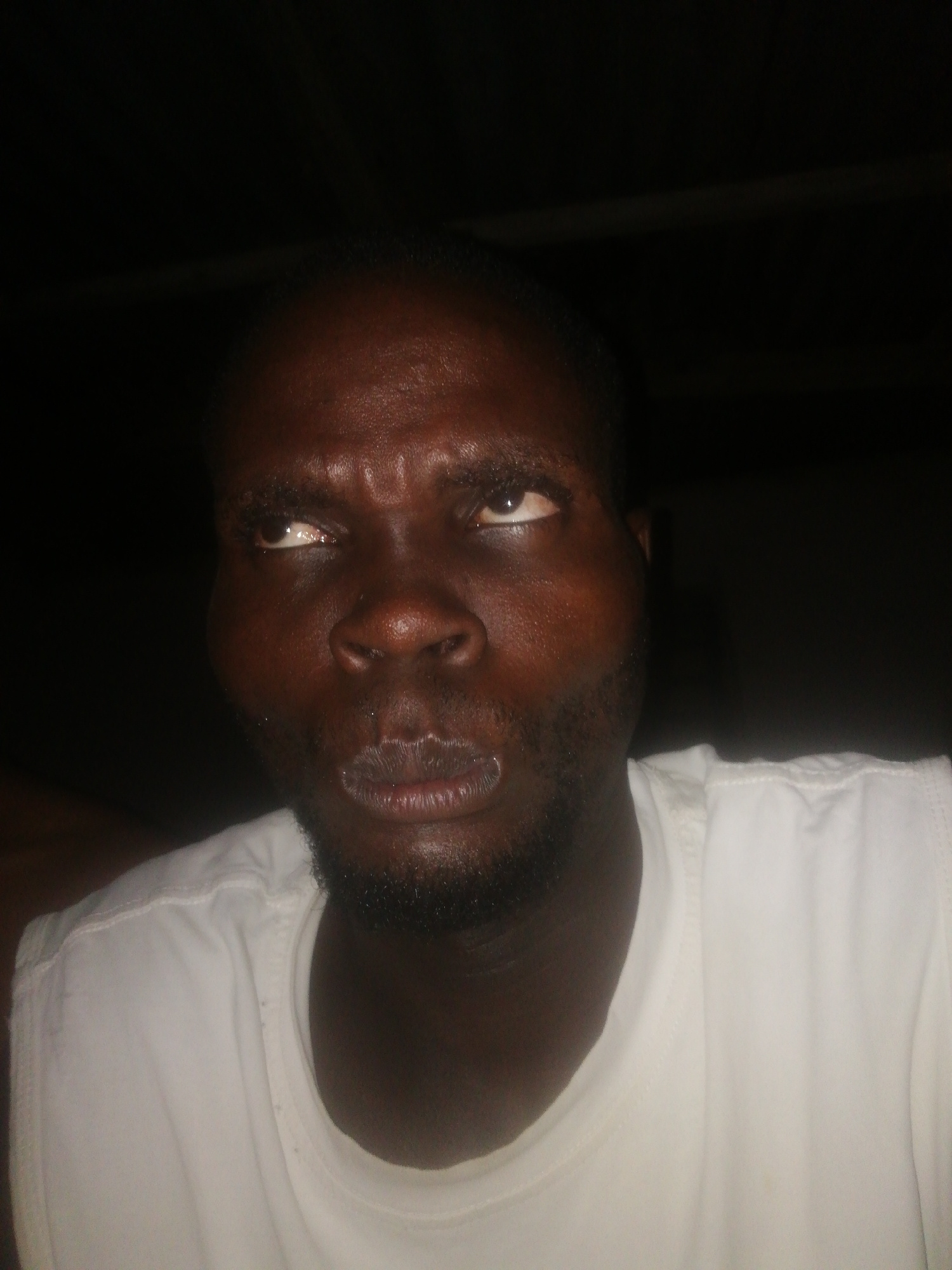 A medium close-up shot depicts a dark-skinned man with a shaved head and a short beard. He is wearing a white t-shirt. His eyes are rolled upwards and to the left, with a slight pout to his lips. Theβ¦read more