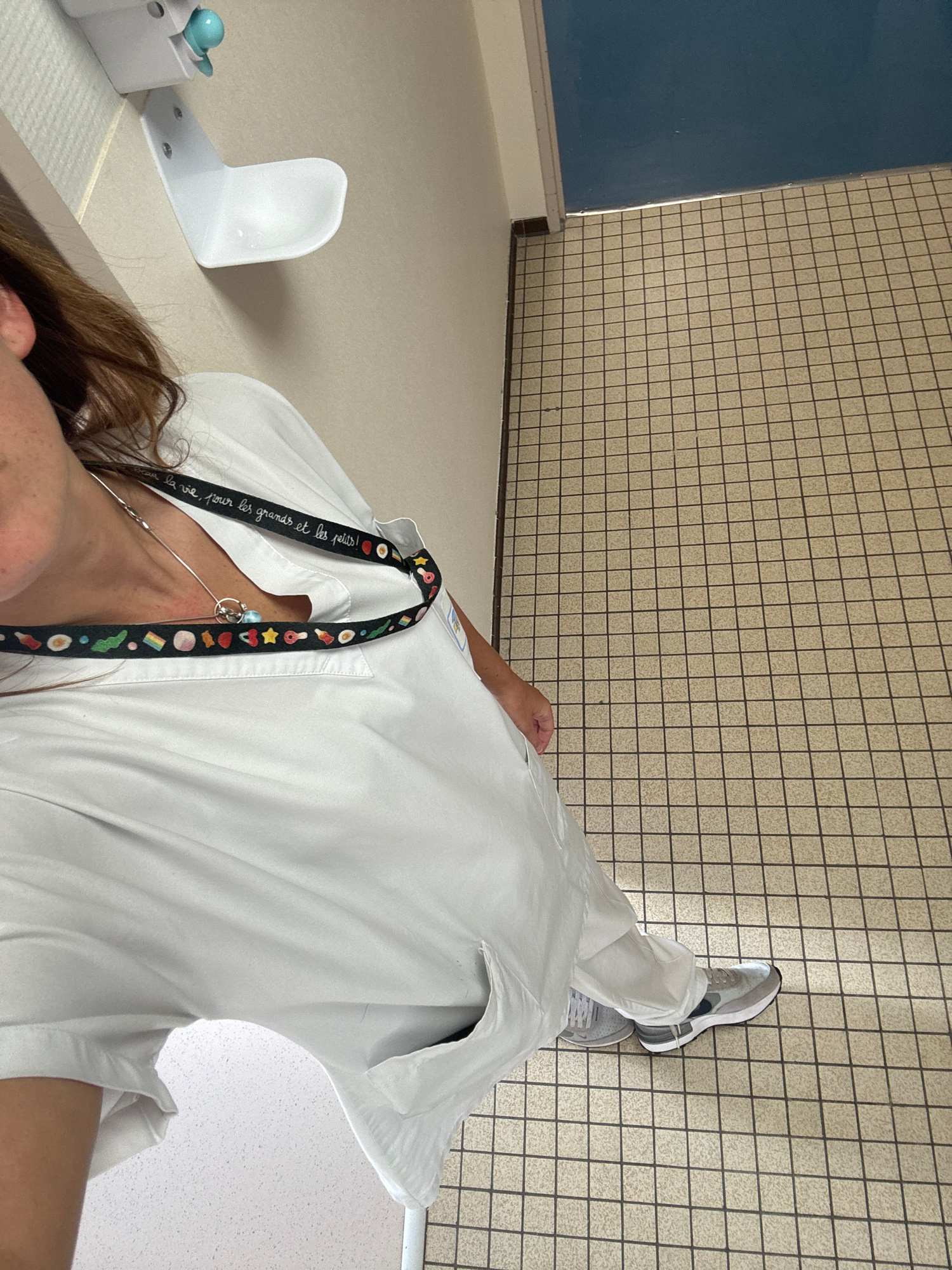 A person, likely female, is shown lying down or leaning back on a white surface, possibly an examination table or bench, in what appears to be an indoor institutional setting. The perspective is fromβ¦read more