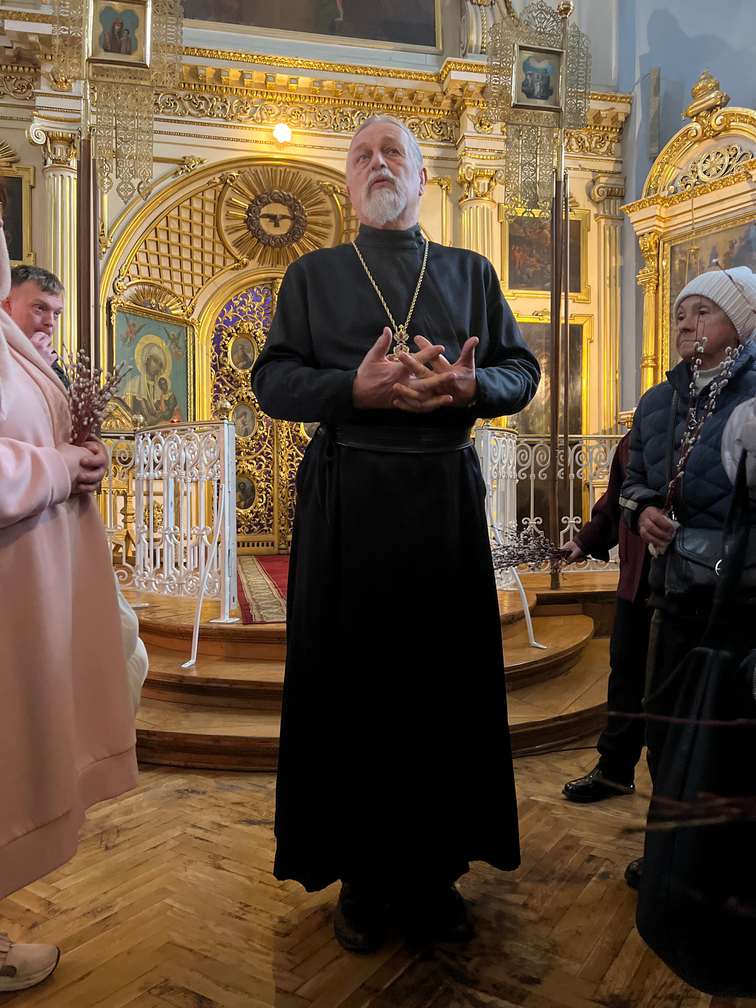 Here is a detailed description of the image: The image shows a scene inside what appears to be an Eastern Orthodox church, likely located in Saint Petersburg, Russia, based on the architectural style…read more