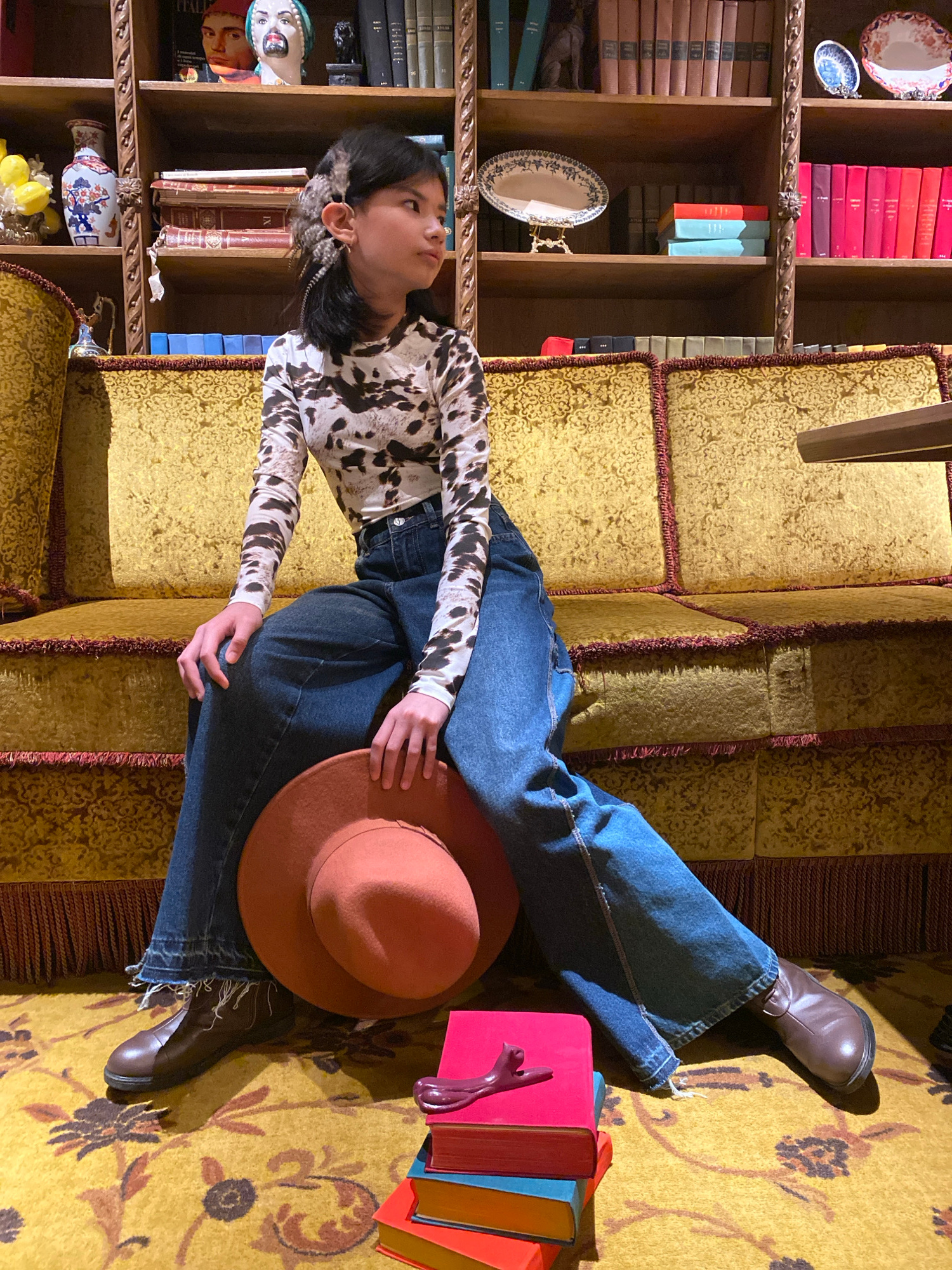 A young person is depicted lying on their back on a plush, golden-yellow sofa with maroon fringed edges, in what appears to be a richly decorated room, possibly in Yekaterinburg, Russia. The image isβ¦read more
